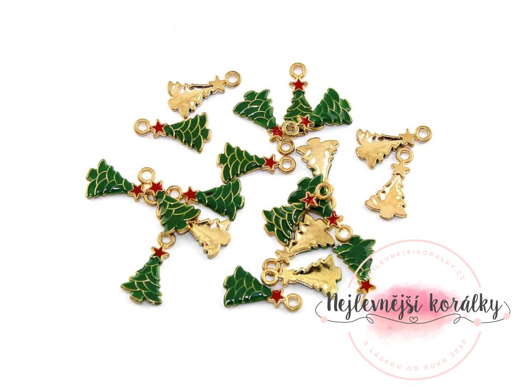 Kovový přívěsek - zlatý - vánoční stromeček - 20,5 x 11,5 x 2,5 mm - 1 ks