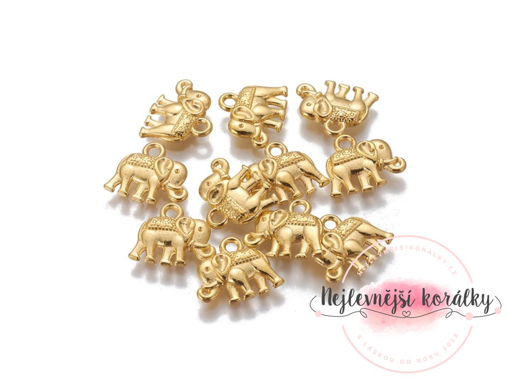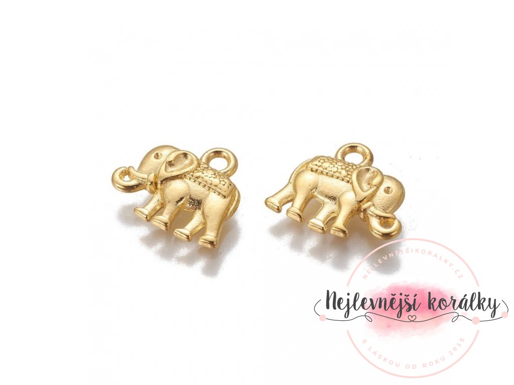Přívěsek tibetského stylu - slon - zlatý - 12 x 14 x 2 mm - 1 ks