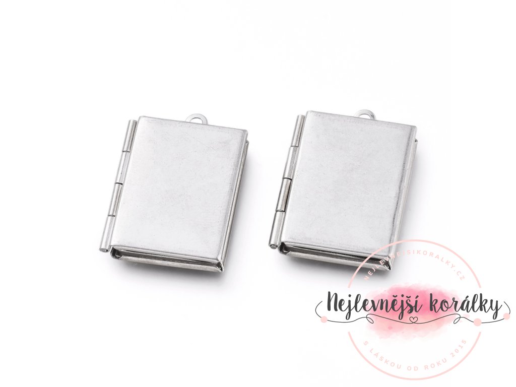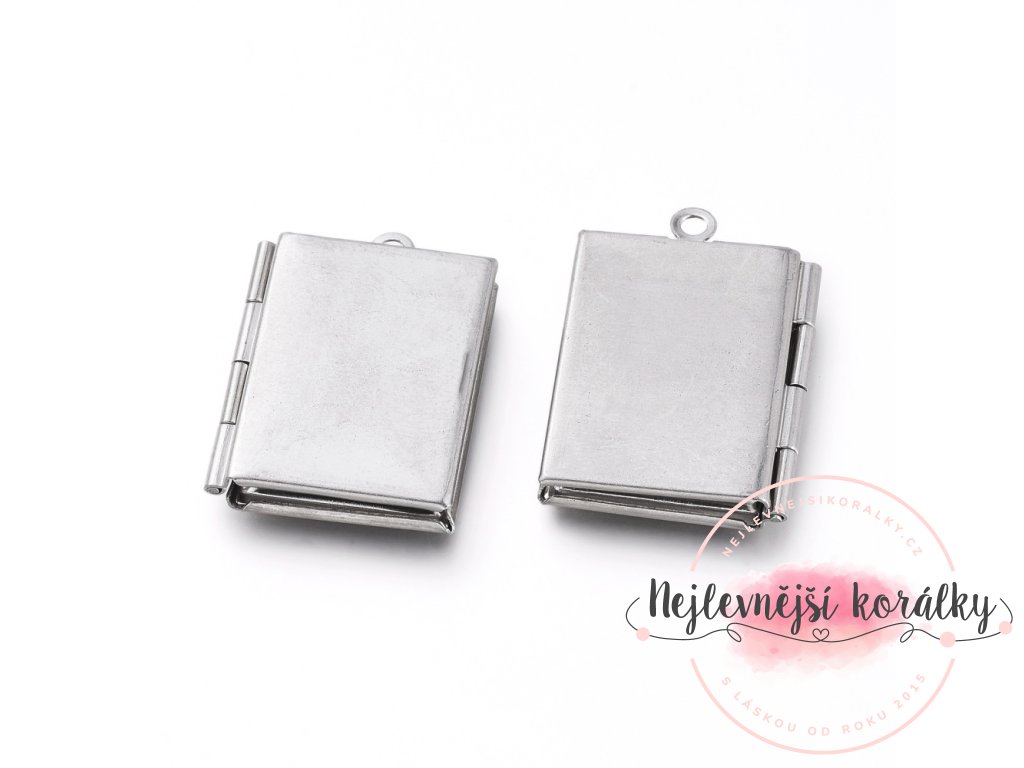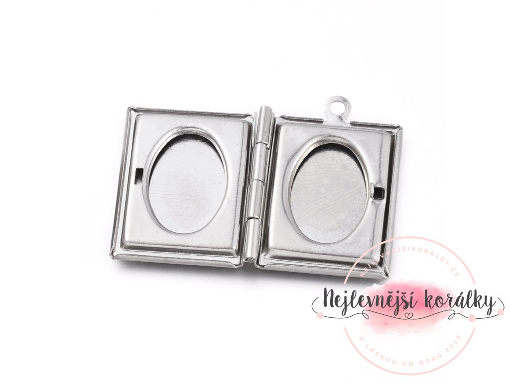 Přívěsek - nerezový otvírací medailonek na fotku - obdélník - platinový - 26 x 19 mm - 1 ks