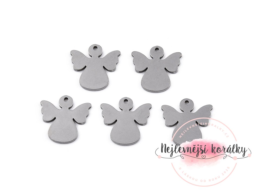 Přívěsek z nerezové oceli - anděl - platinový - 15 x 15 x 1 mm - 1 ks