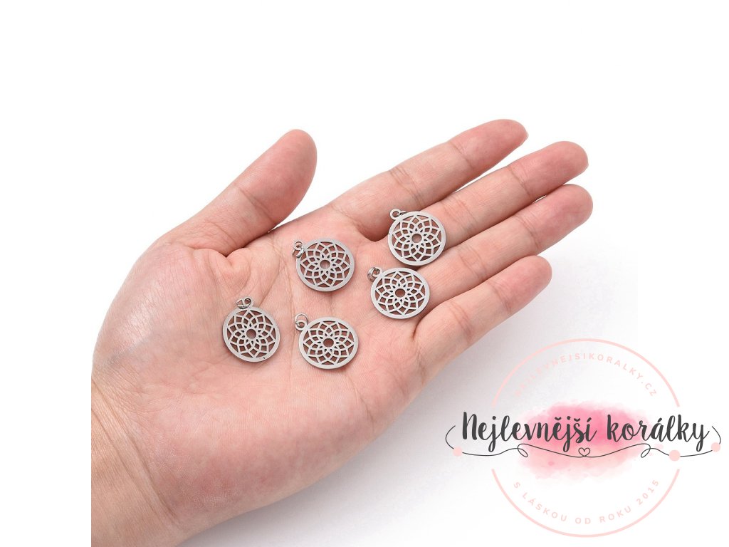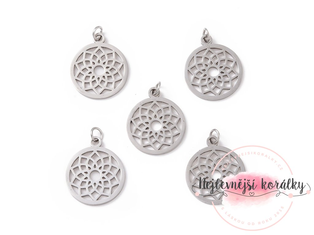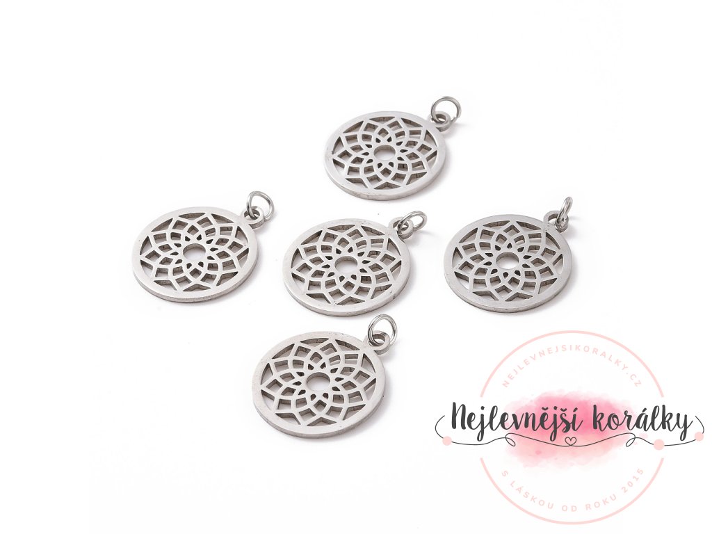 Přívěsek z nerezové oceli - čakra - korunní - platinový - 22,5 x 19 x 1 mm - 1 ks