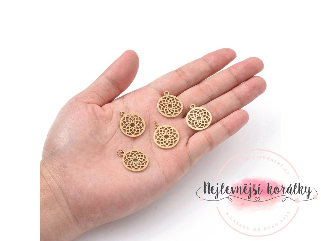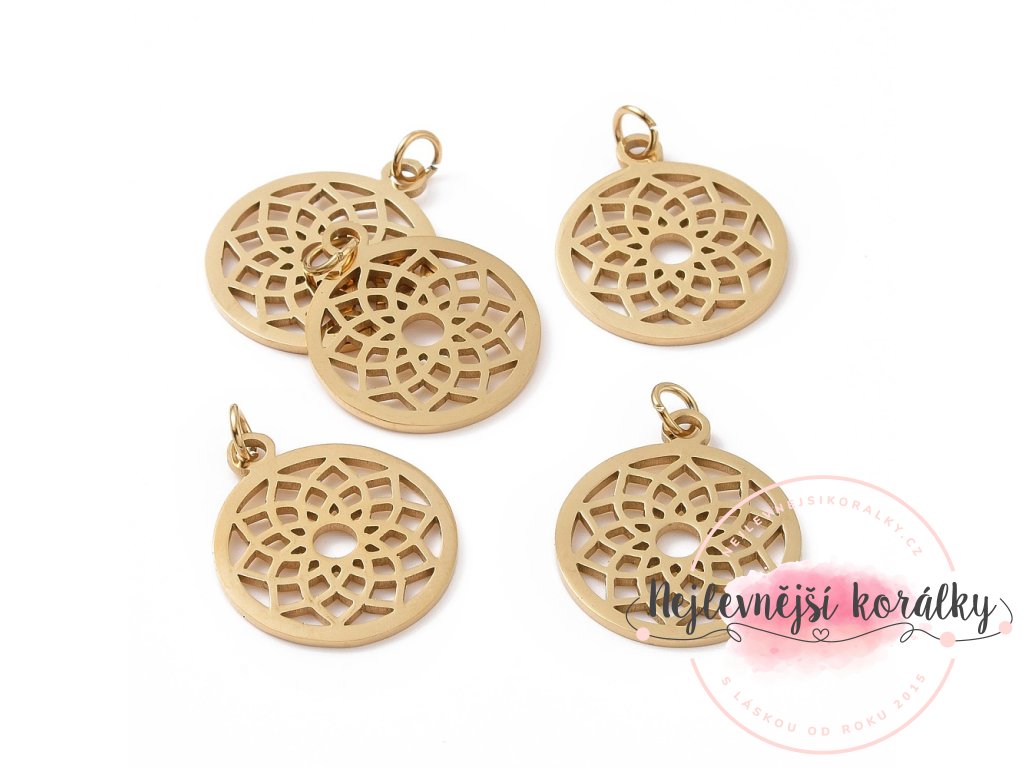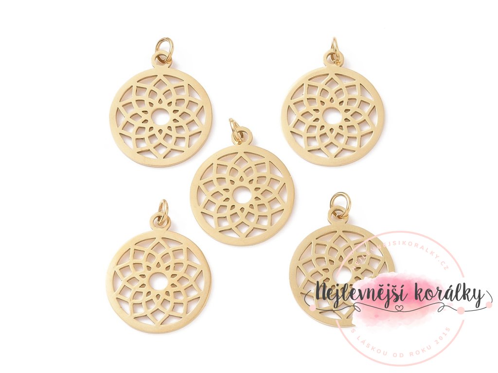 Přívěsek z nerezové oceli - čakra - korunní - zlatý - 22,5 x 19 x 1 mm - 1 ks