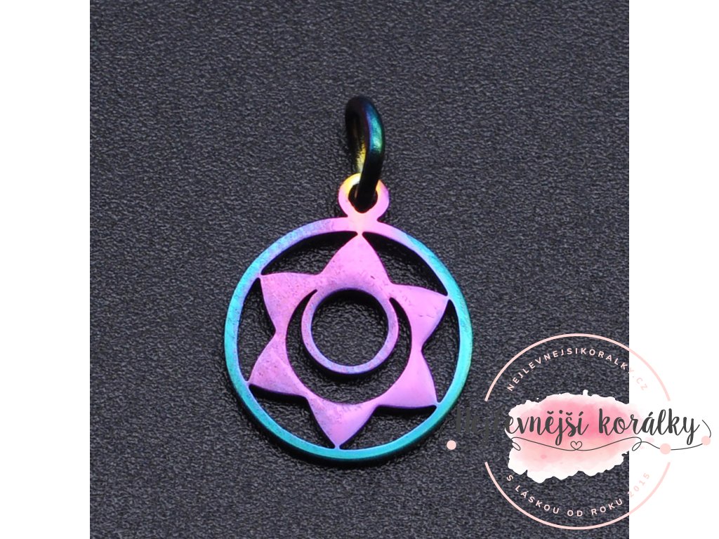 Přívěsek z nerezové oceli - čakra - křížová - metalický - 13 x 11 x 1 mm - 1 ks