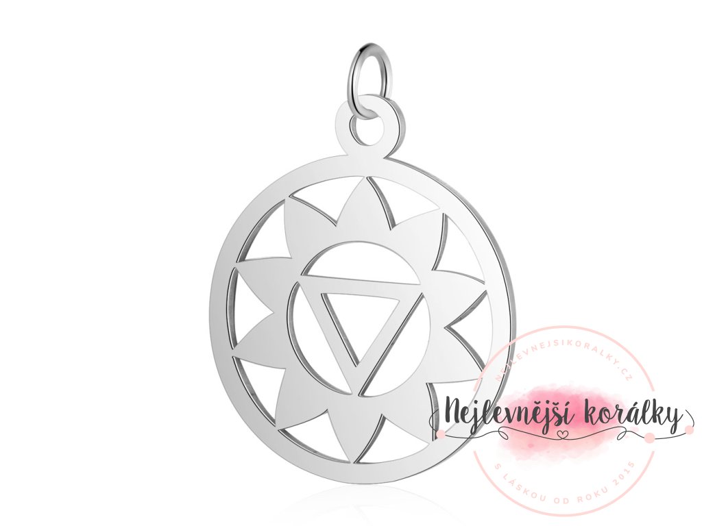Přívěsek z nerezové oceli - čakra - solar plexus - platinový - 13 x 11 x 1 mm - 1 ks
