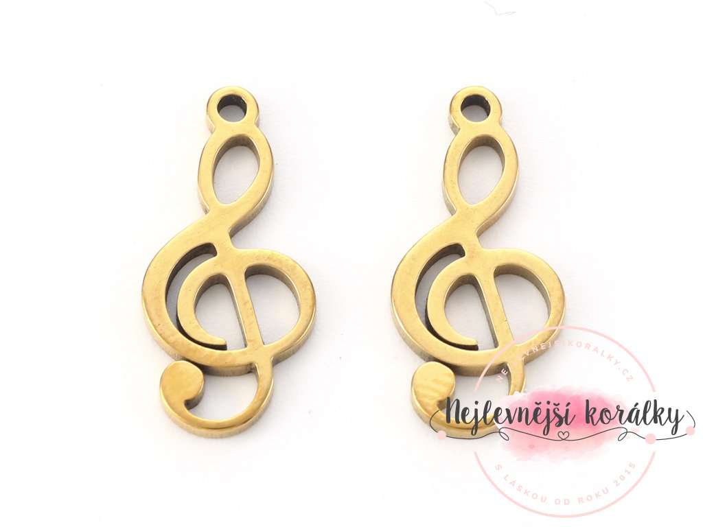 Přívěsek z nerezové oceli - houslový klíč - zlatý - 17 x 8 x 1 mm - 1 ks