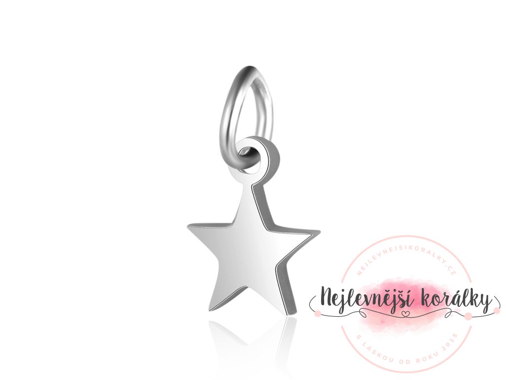 Kvalitní přívěsek ve tvaru hvězdy o výšce 7 mm, šířce 5,5 mm, hloubce 1 mm s velikostí průvleku 2 - 2,5 mm.