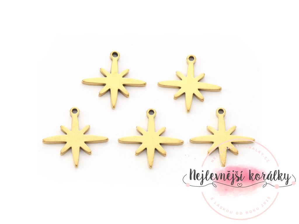 Přívěsek z nerezové oceli - hvězda - zlatý - 15 x 15 x 1 mm - 1 ks