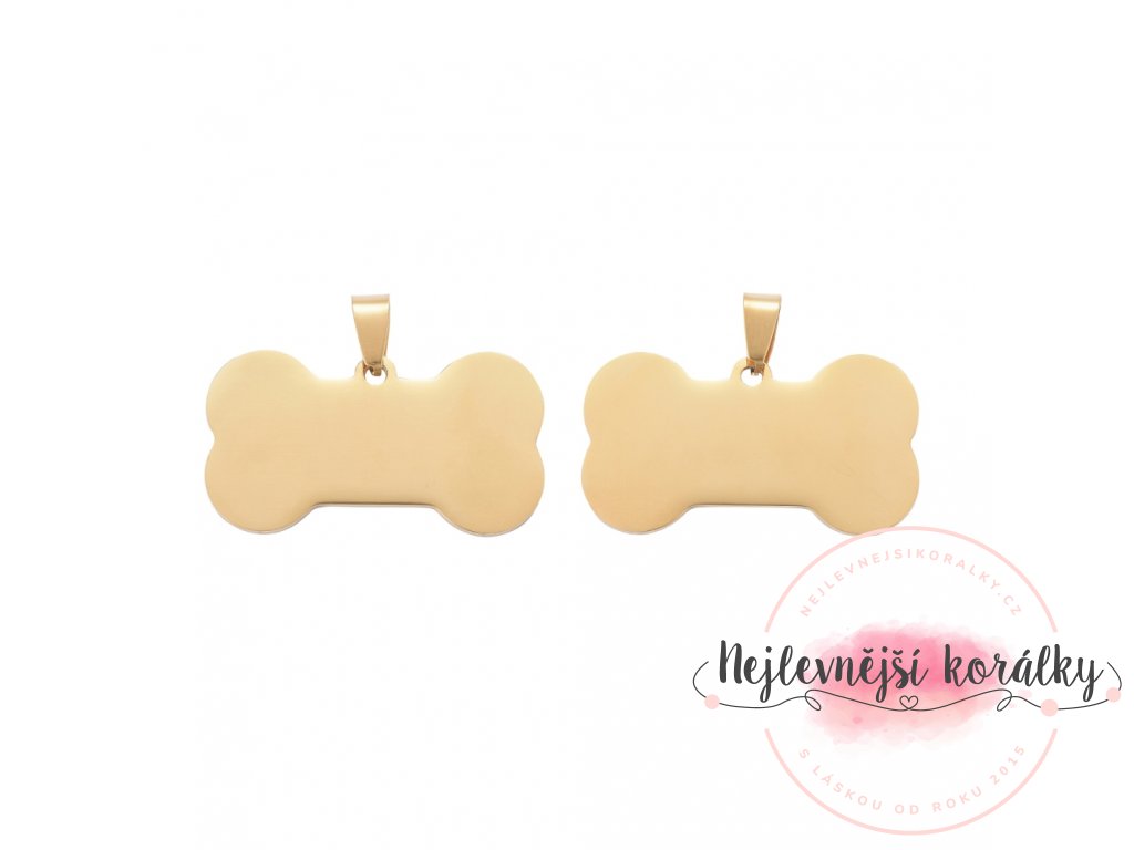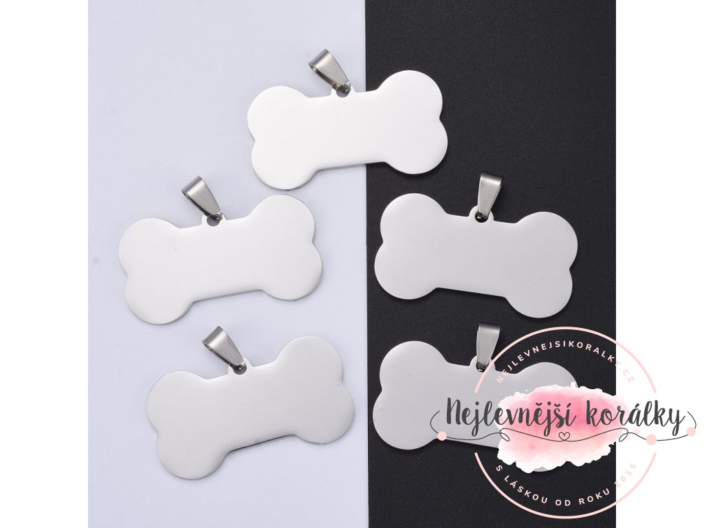 Přívěsek z nerezové oceli - kost pro pejska - 22 x 40 x 1,8 mm - 1 ks