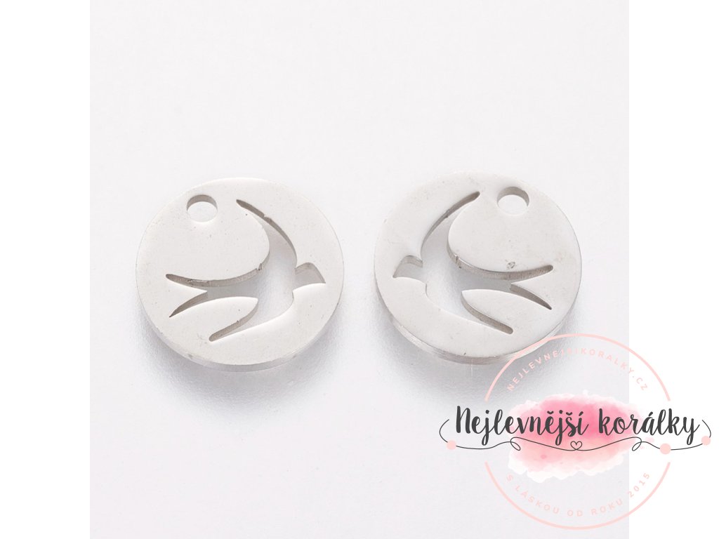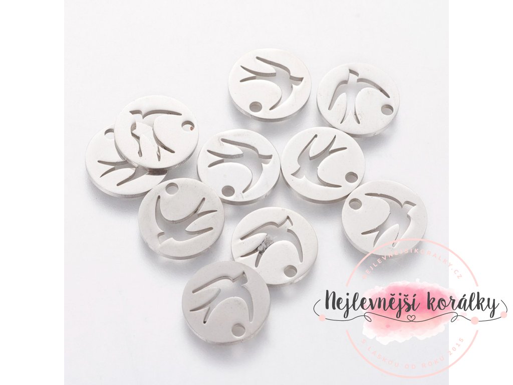 Přívěsek z nerezové oceli - placička s vlaštovkou - platinová - 12 x 1 mm - 1 ks