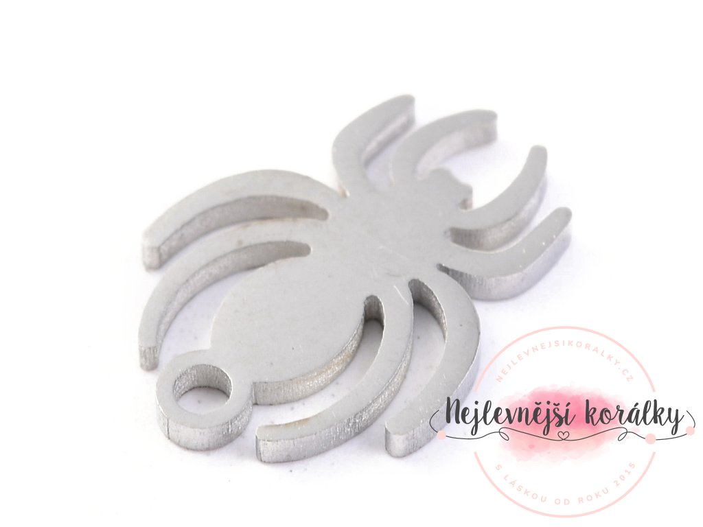 Přívěsek z nerezové oceli - platinový - pavouk - 13 x 9 x 1 mm - 1 ks