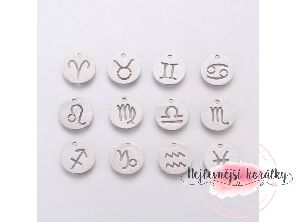 Přívěsek z nerezové oceli - platinový - znamení zvěrokruhu - 12 x 1 mm - 1 ks