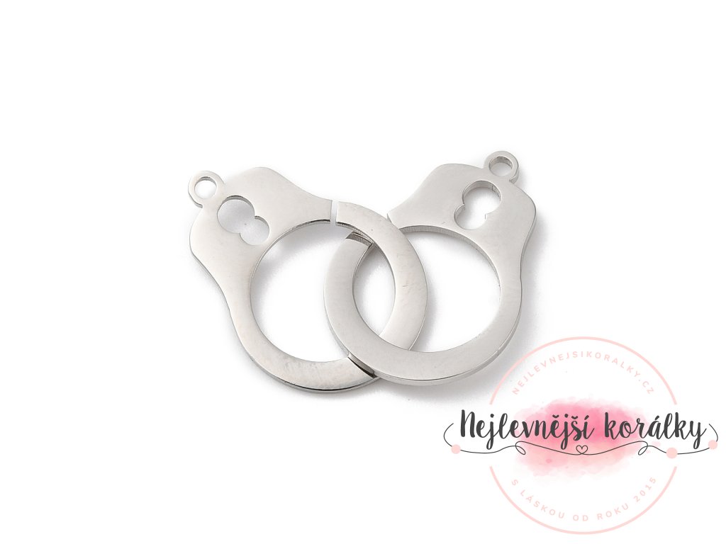 Přívěsek z nerezové oceli - pouta - platinový - 32 x 14 x 1 mm - 1 ks