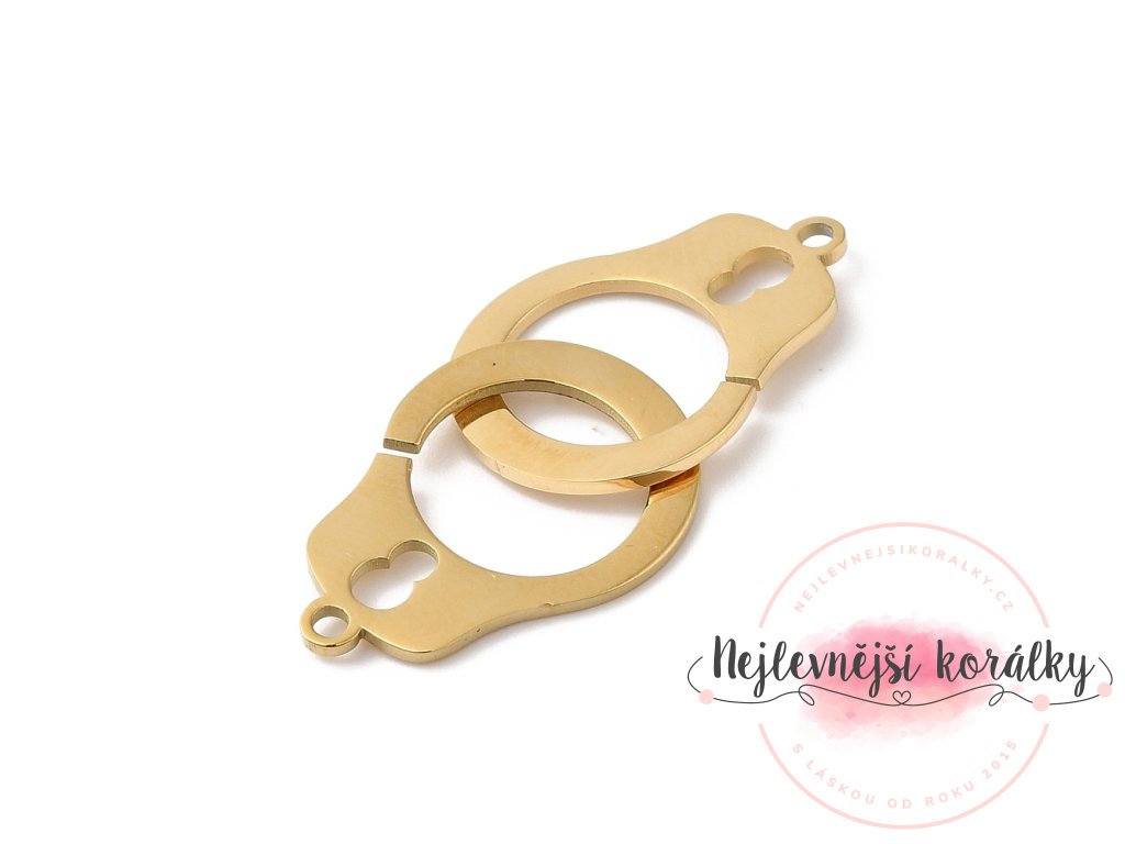 Přívěsek z nerezové oceli - pouta - zlatý - 32 x 14 x 1 mm - 1 ks