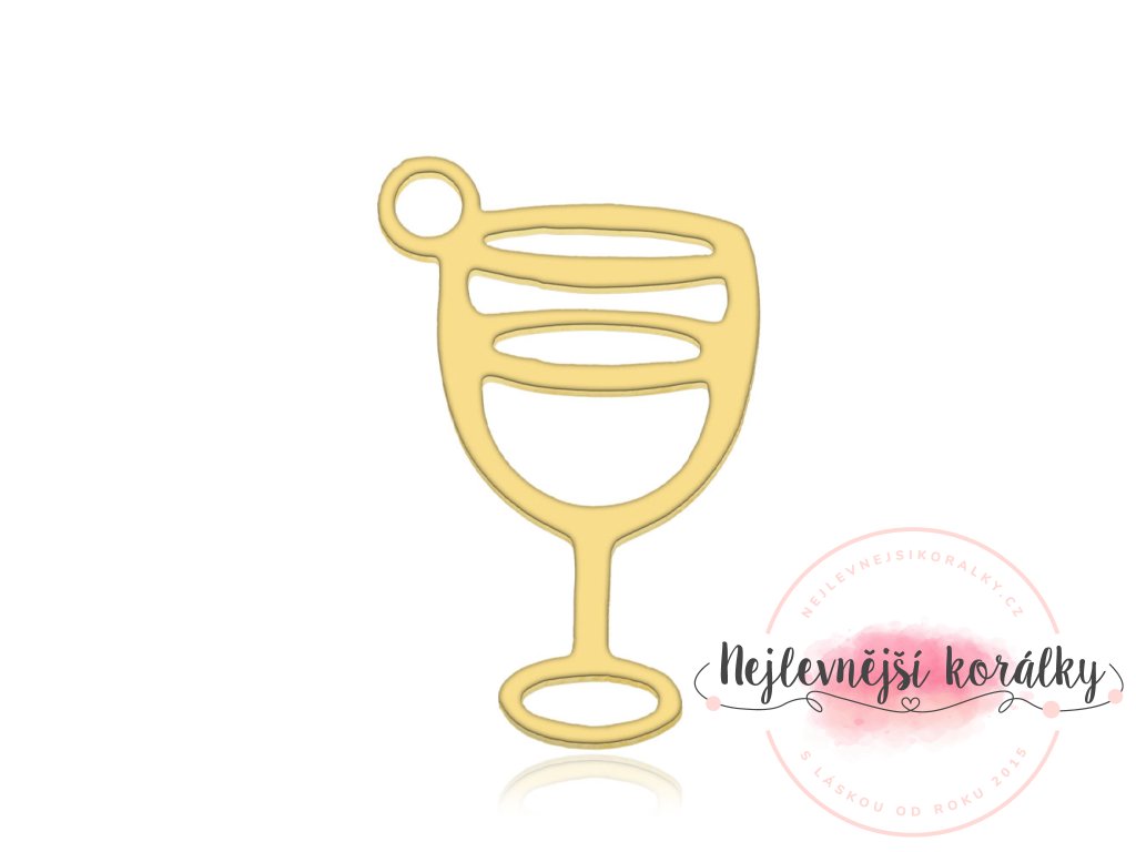 Přívěsek z nerezové oceli - sklenice vína - zlatý - 16 x 10 x 1 mm - 1 ks