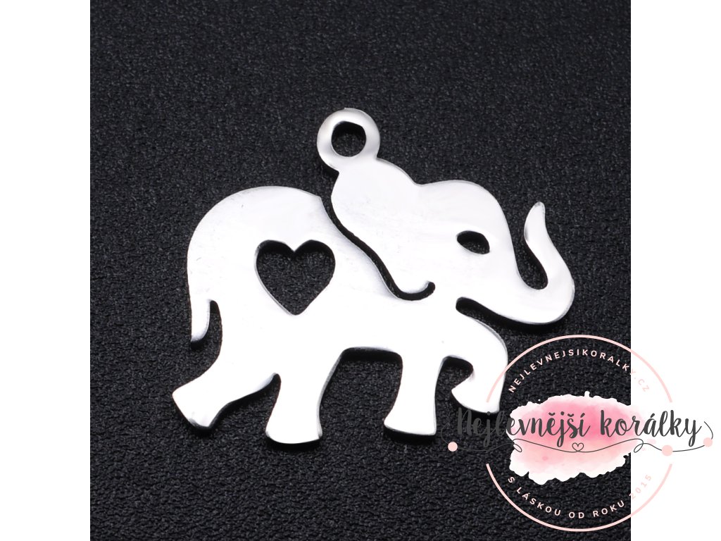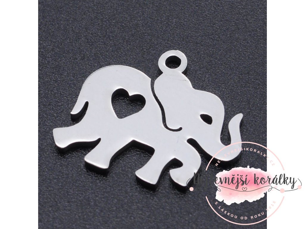 Přívěsek z nerezové oceli - slon se srdíčkem - 15 x 17 x 1 mm - 1 ks
