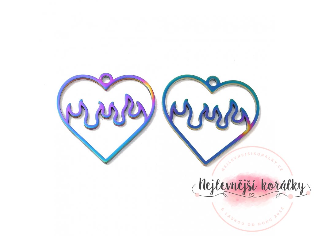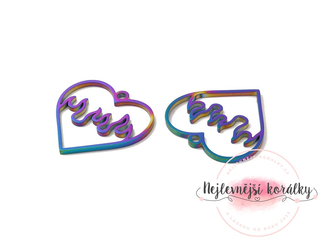 Přívěsek v metalicky barevném (duhovém) provedení je vyroben z nerezové oceli typu 304.