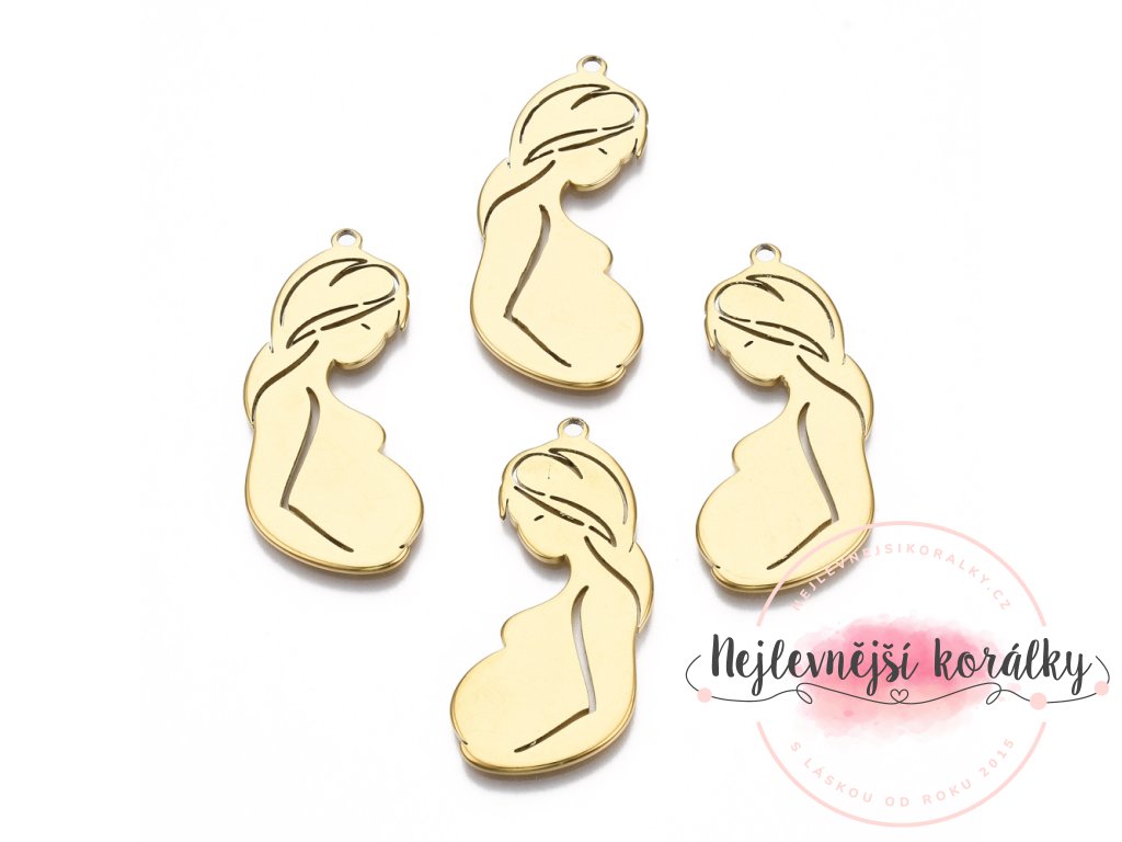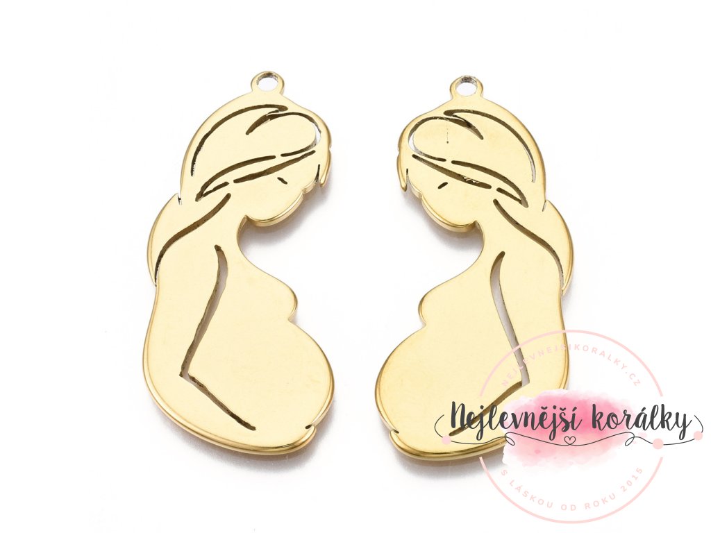 Přívěsek z nerezové oceli - těhotná žena - zlatý - 41 x 18 x 1 mm - 1 ks