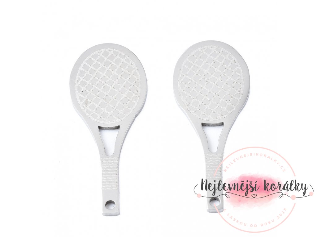 Kvalitní přívěsek ve tvaru tenisové rakety o výšce cca 25 mm, šířce cca 10 mm, hloubce cca 1 mm s velikostí průvleku cca 1 mm.