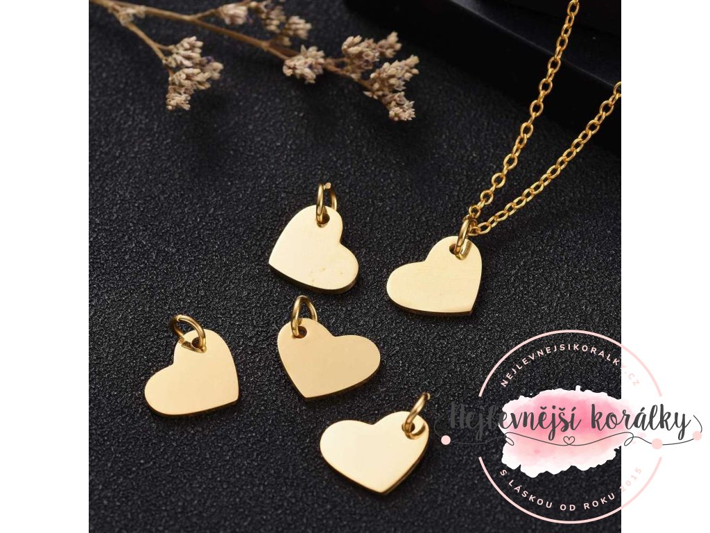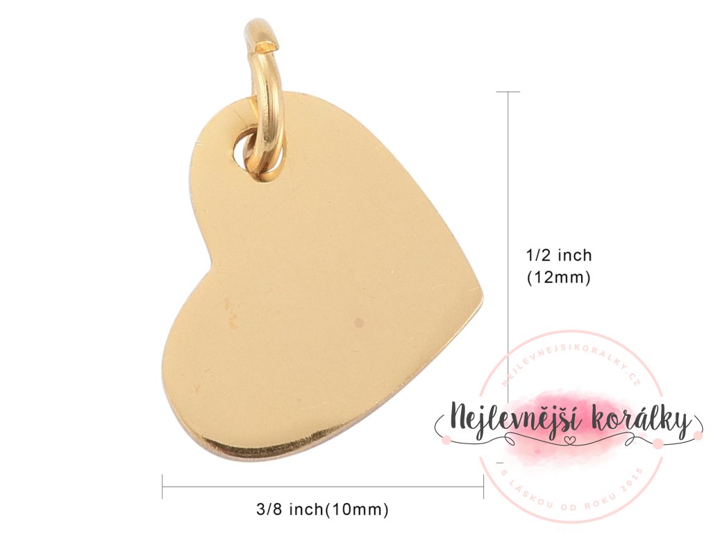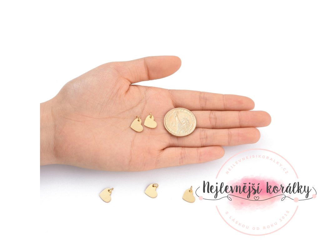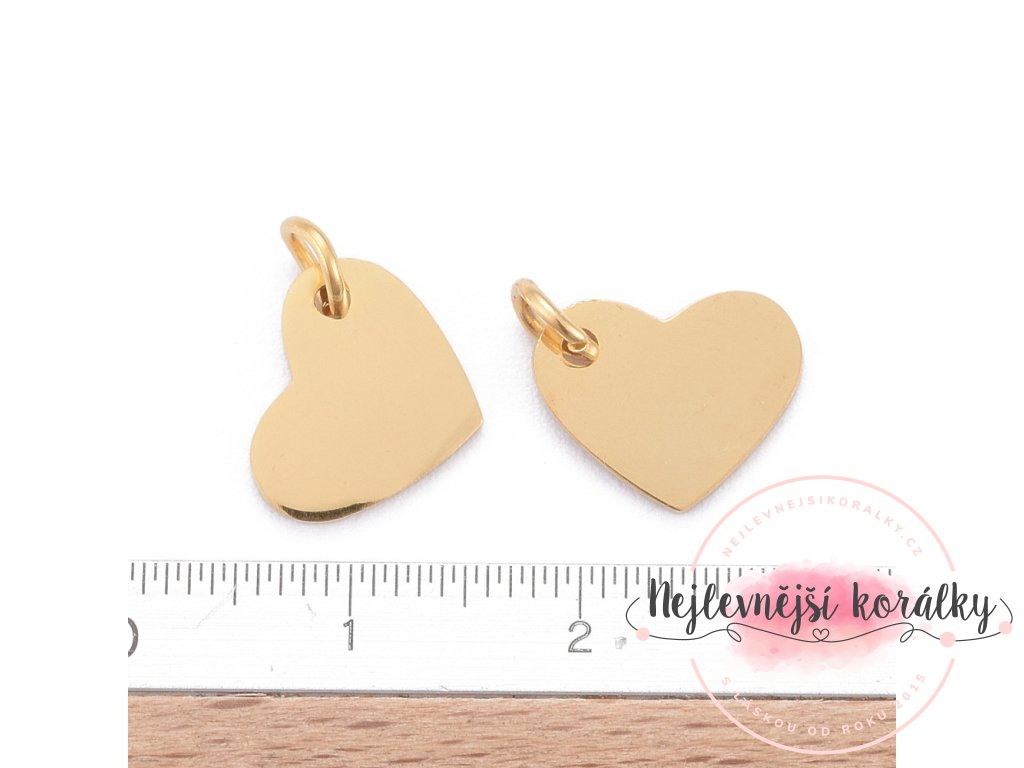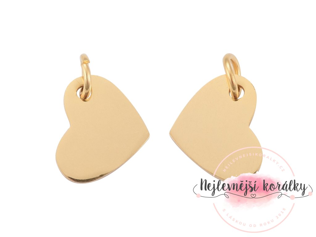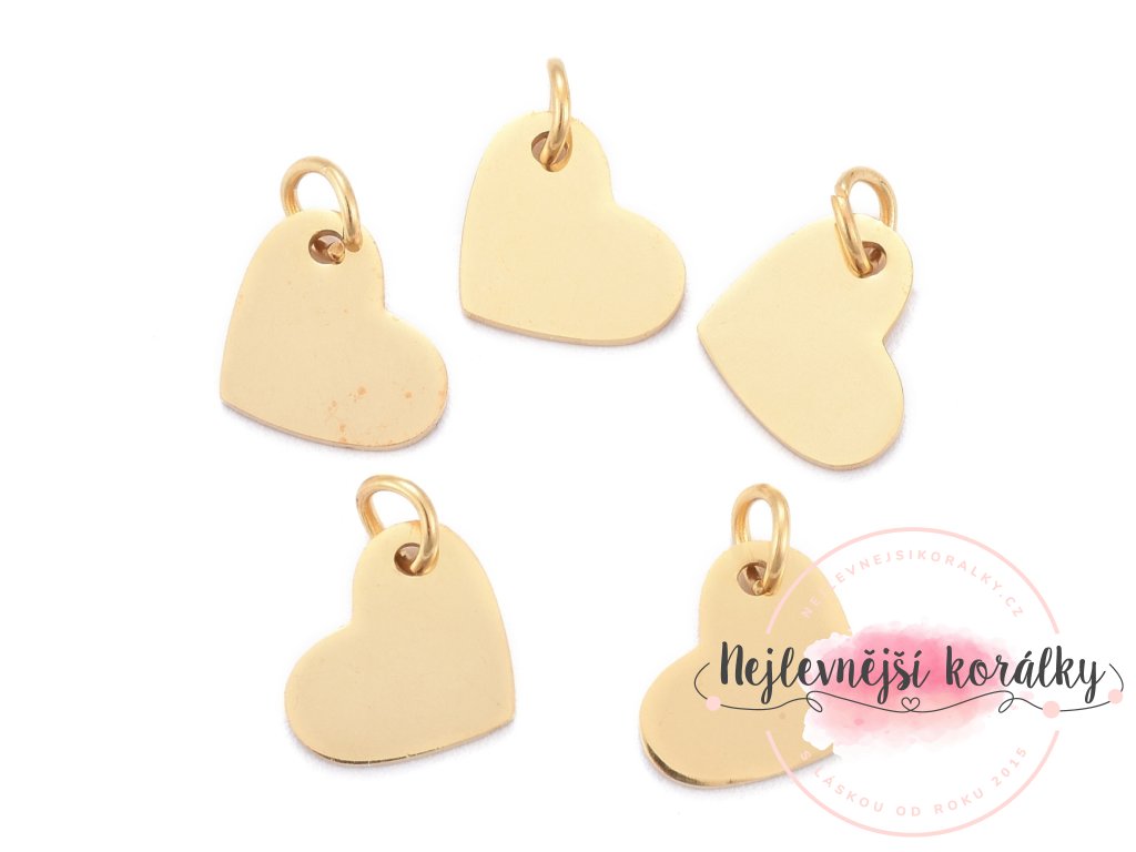 Přívěsek z nerezové oceli - zlatý - srdce - 10 x 12 x 1 mm - 1 ks