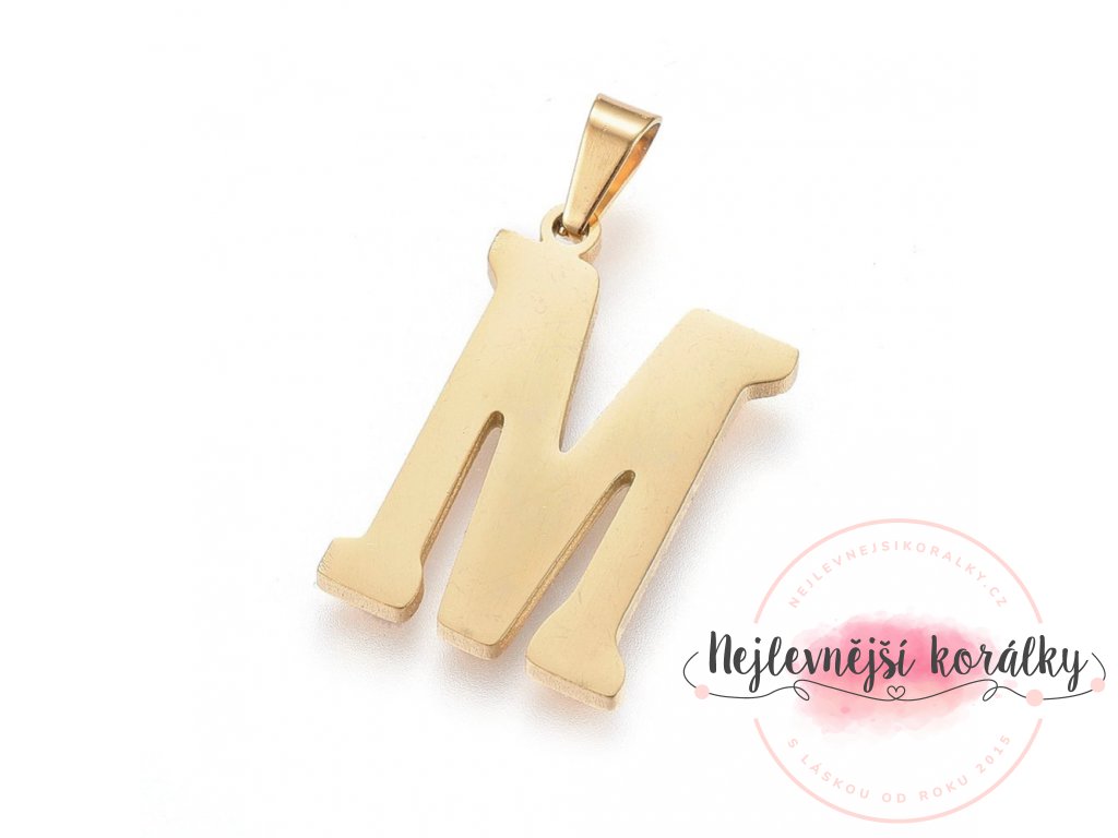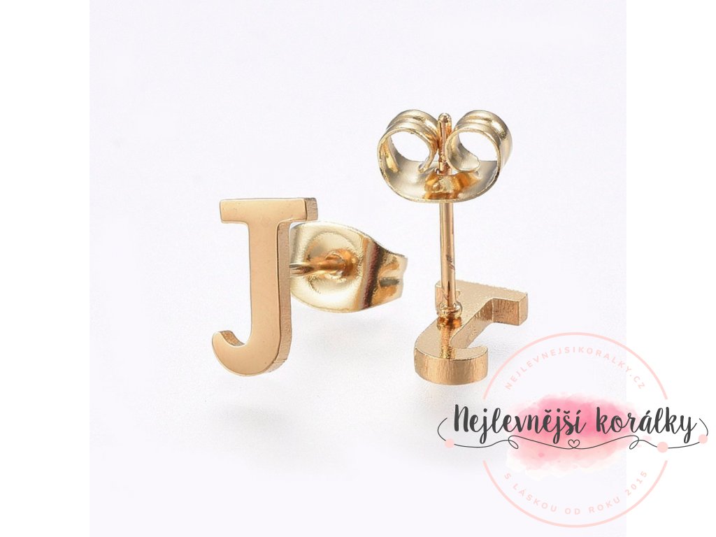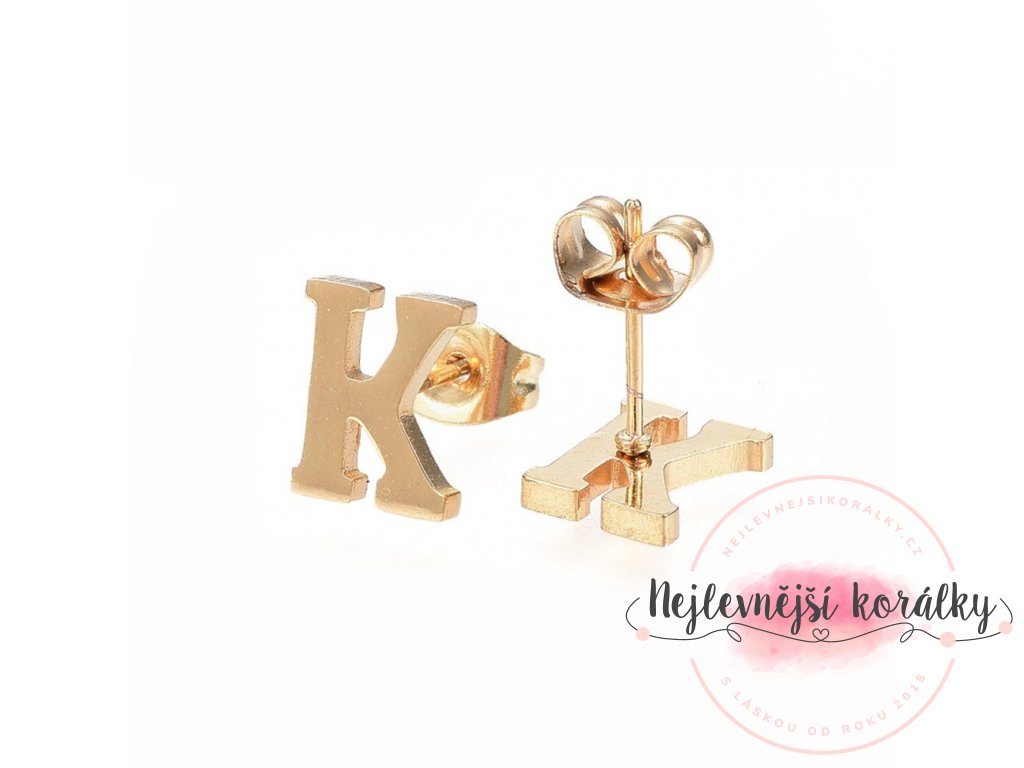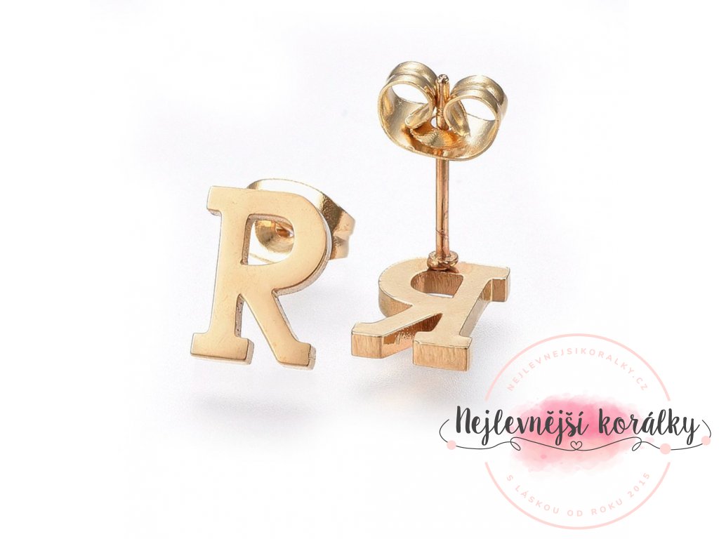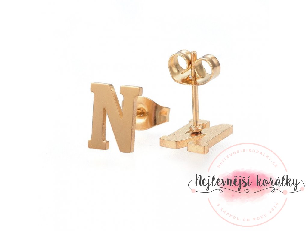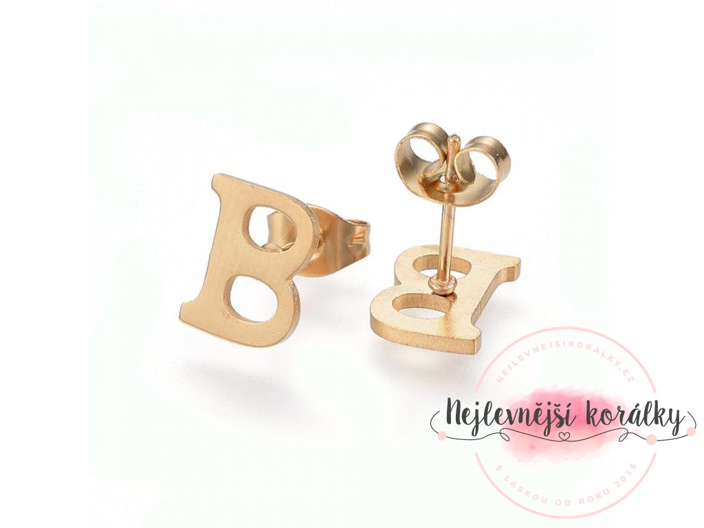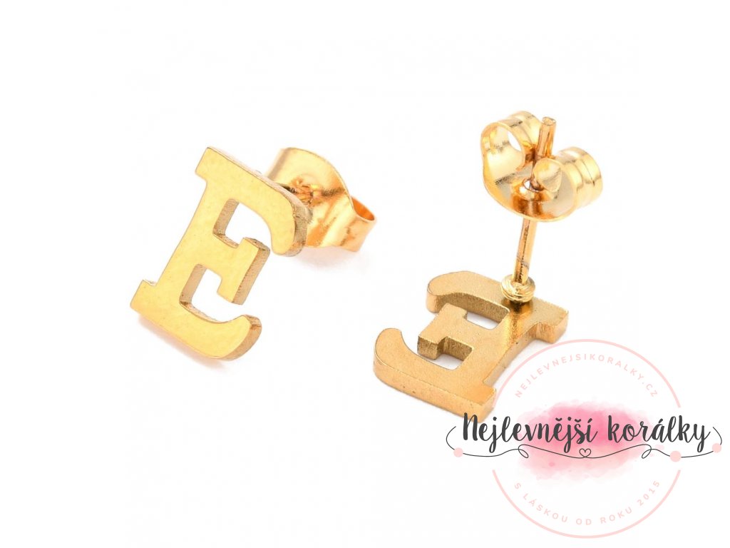 Sada přívěsku a náušnic z nerezové oceli - písmeno - zlatá - 20 ~ 23 mm x 13 ~ 19 mm - 1 ks
