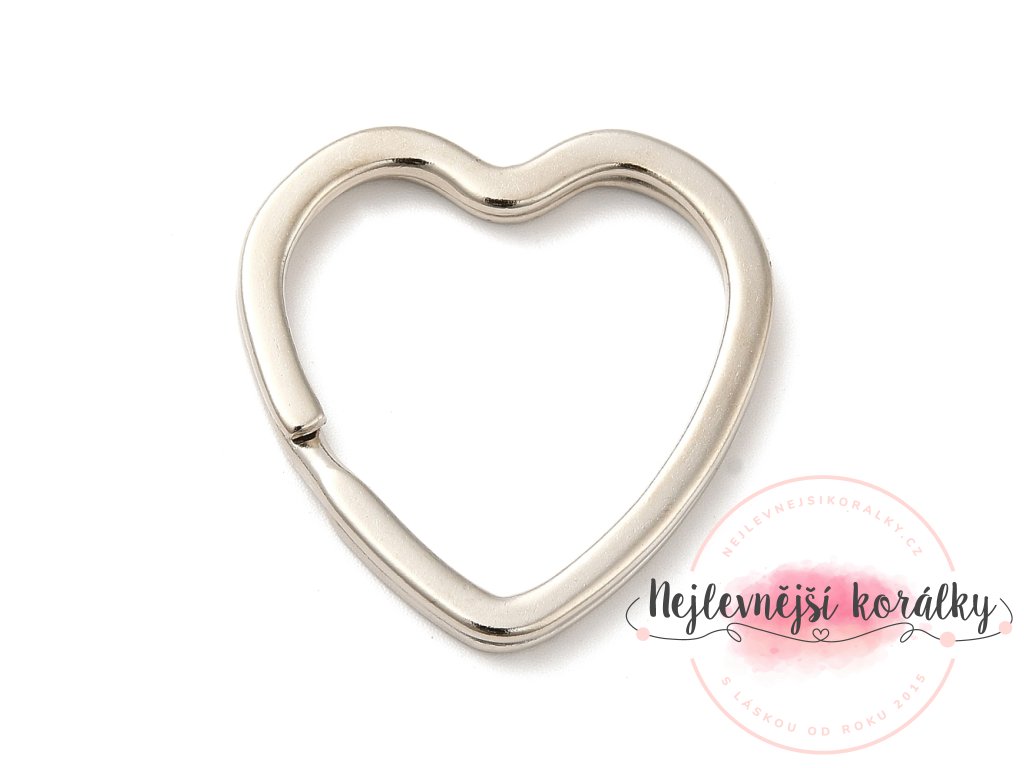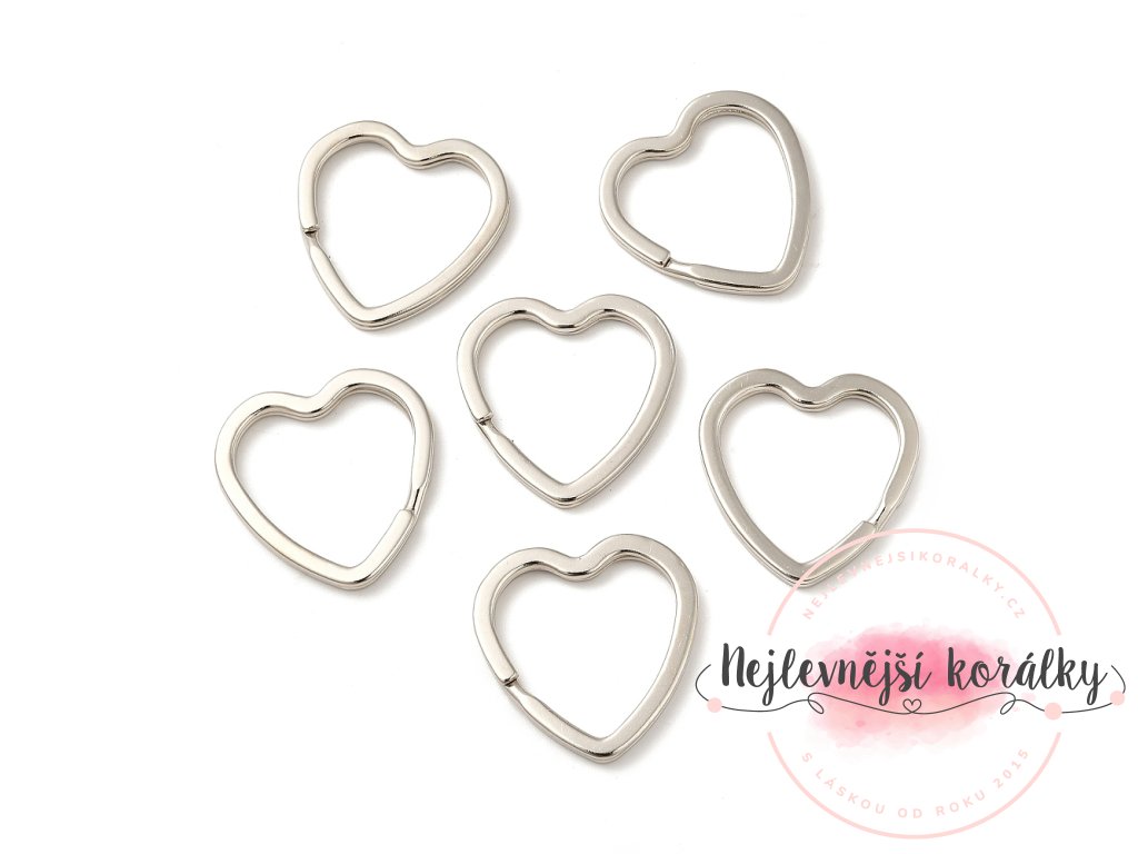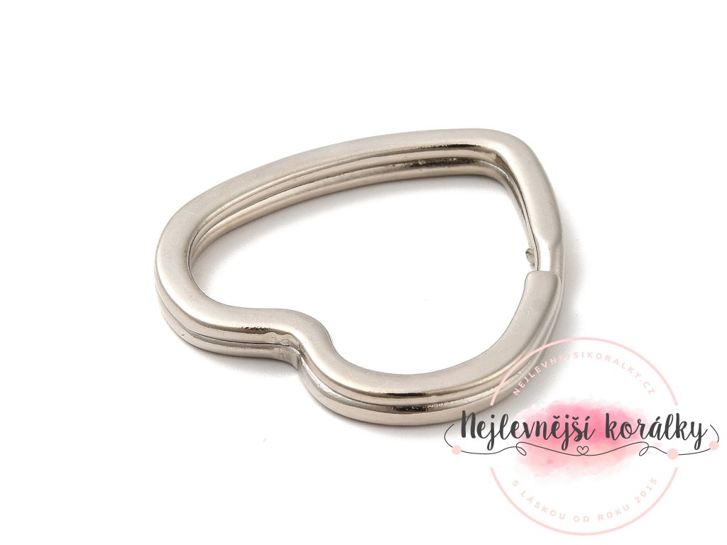 Kovový kroužek na klíče - srdce - platinový - 31 x 31 x 3 mm - 1 ks