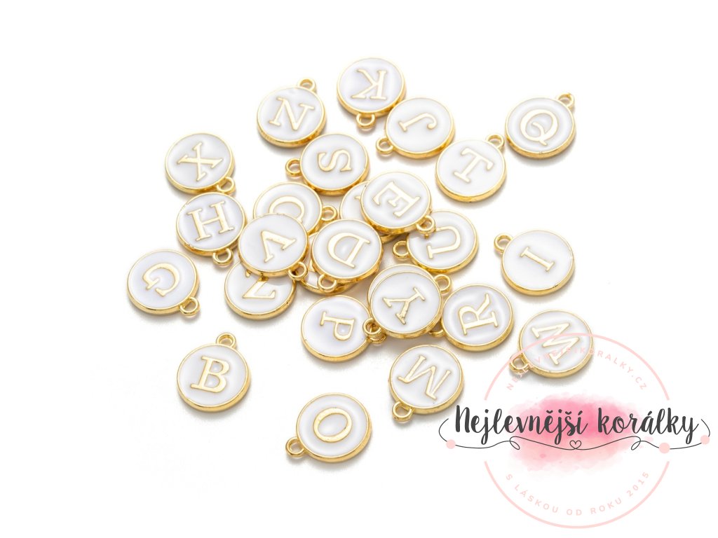 Kovový přívěsek - bílý - placička s písmenem - "A - Z" - 14 x 12 x 2 mm - sada