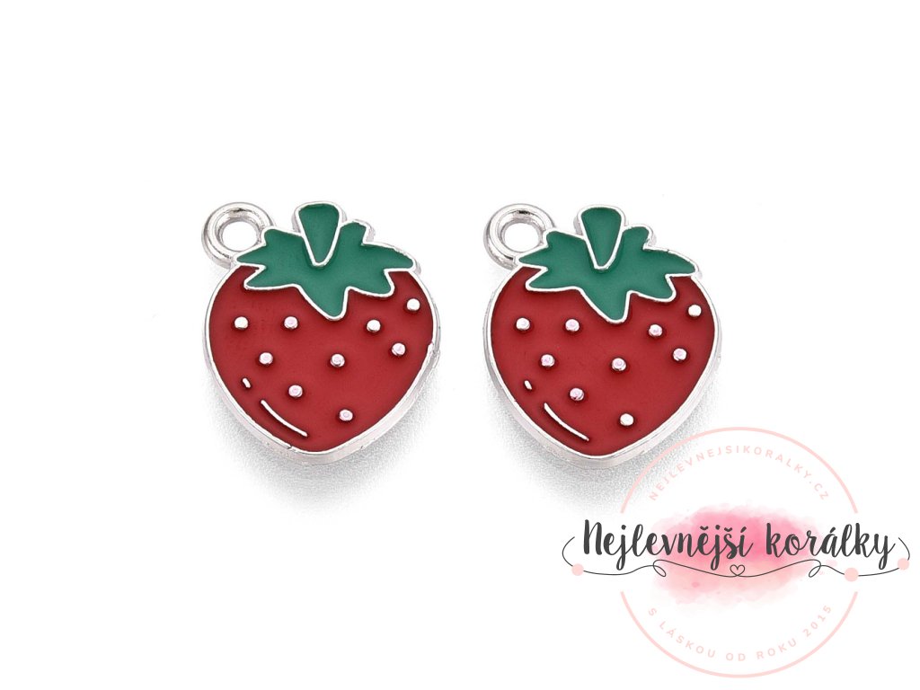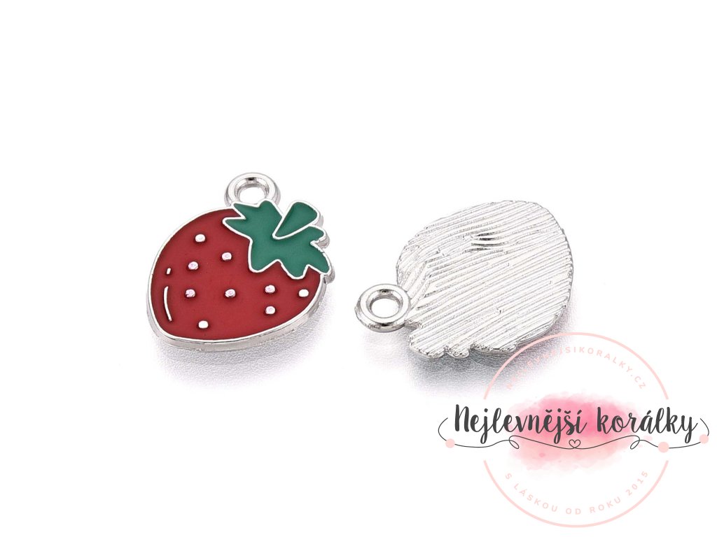 Kovový přívěsek - jahoda - 15 x 13 x 1 mm - 1 ks