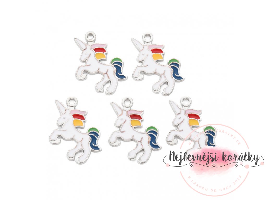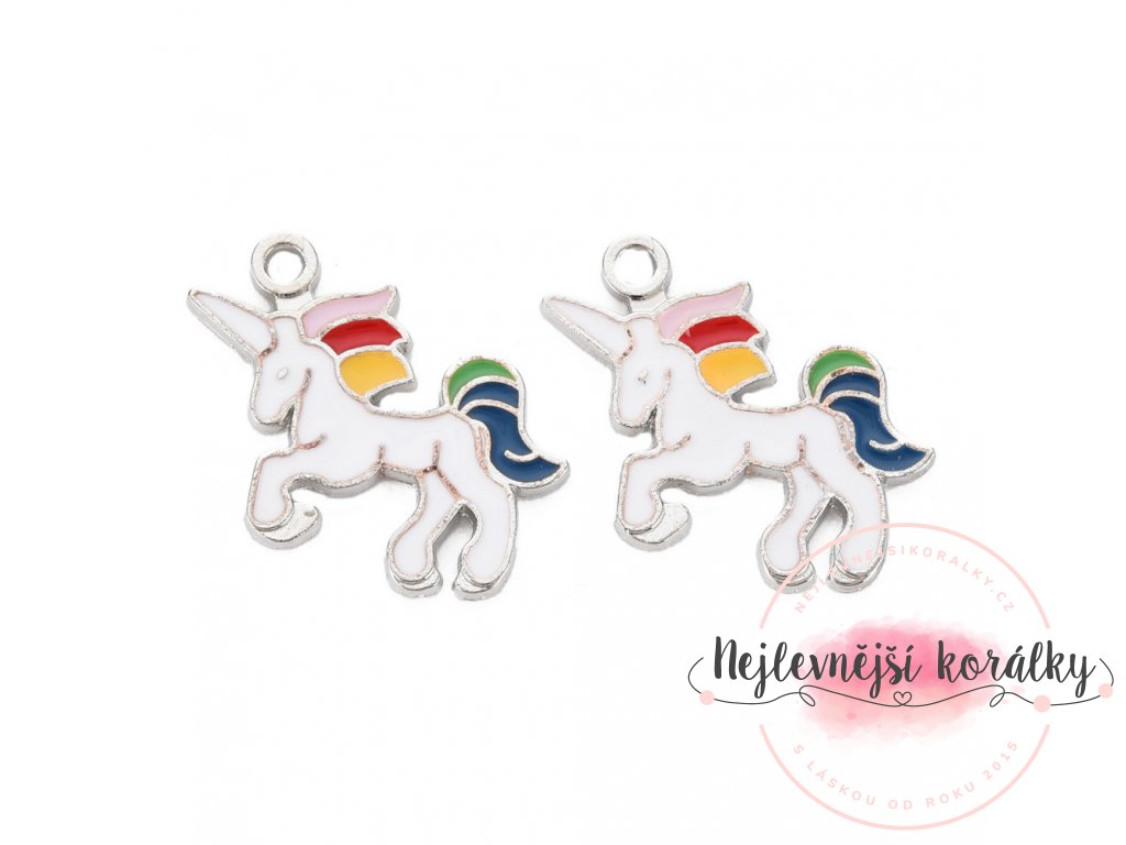 Kovový přívěsek - jednorožec - barevný - 20 x 22 x 1 mm - 1 ks