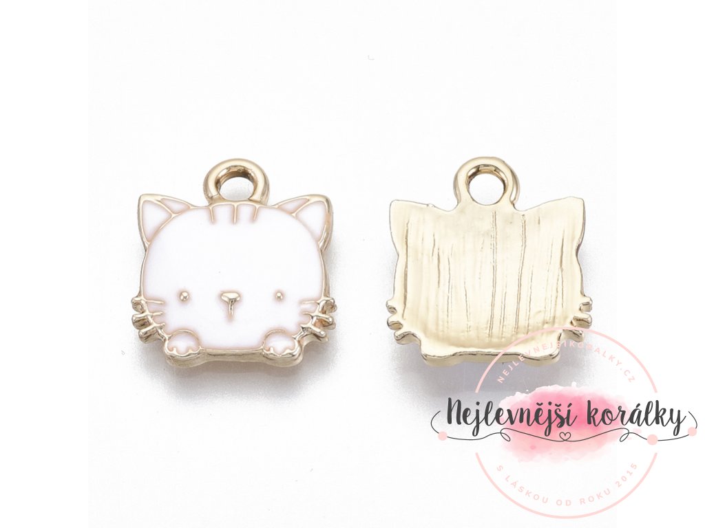 Kovový přívěsek - kočka - bílá - 15 x 13 x 3 mm - 1 ks
