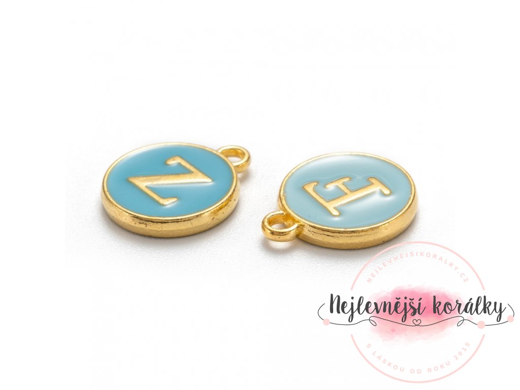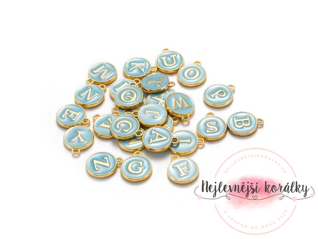 Kovový přívěsek - modrý - placička s písmenem - "A - Z" - 14 x 12 x 2 mm - sada