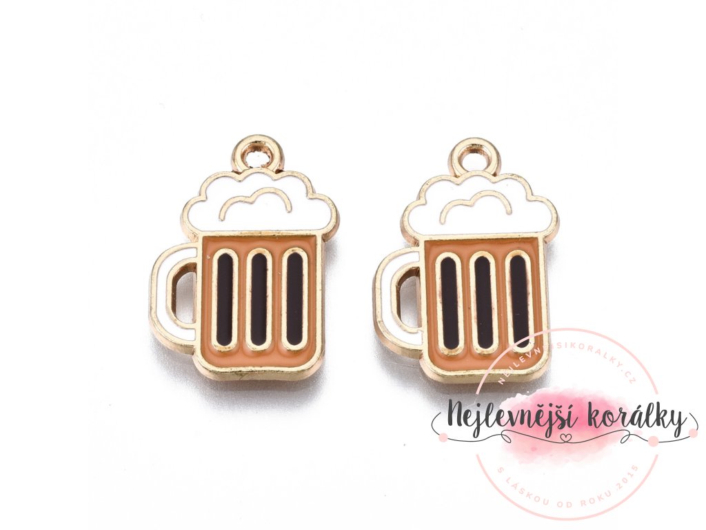 Kovový přívěsek - sklenice piva s pěnou - 19 x 13 x 1 mm - 1 ks