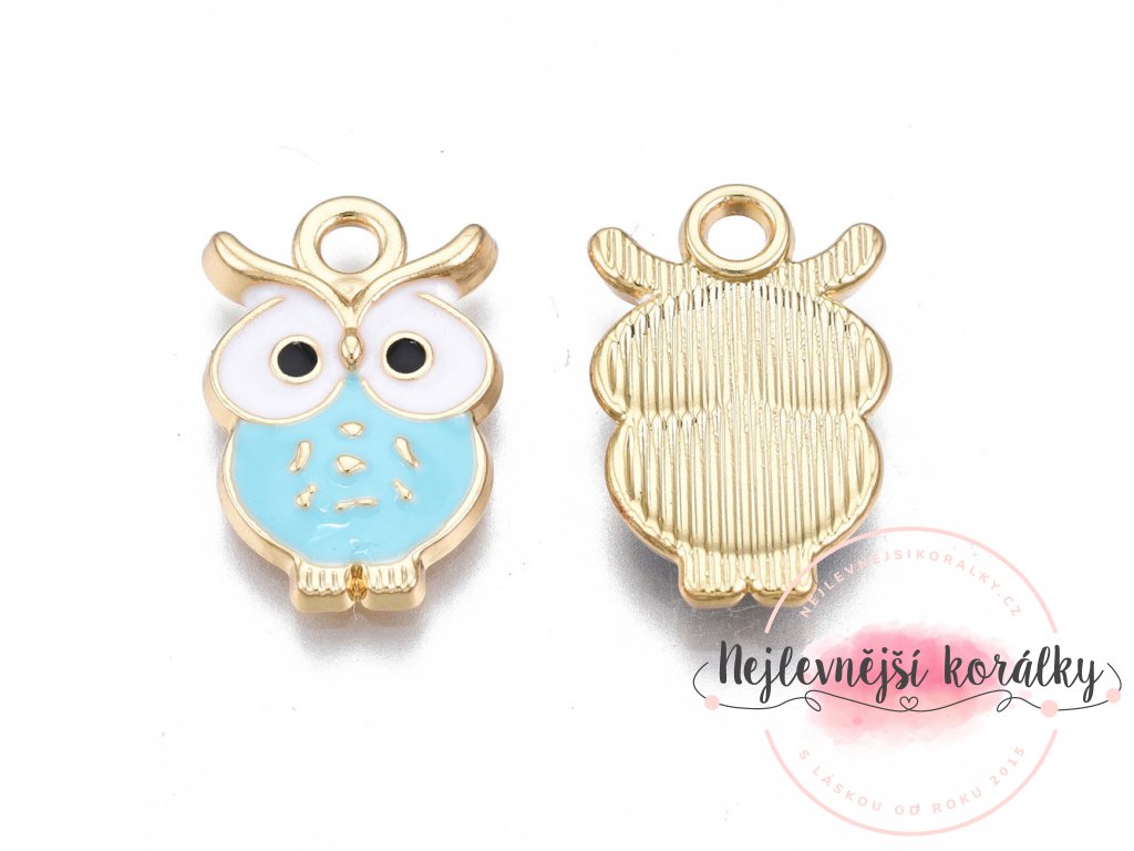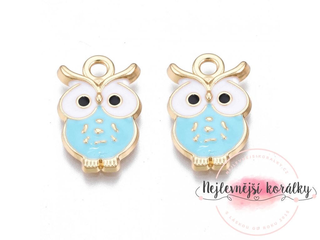 Kovový přívěsek - sova - tyrkysová - 19 x 12 x 2.5 mm - 1 ks