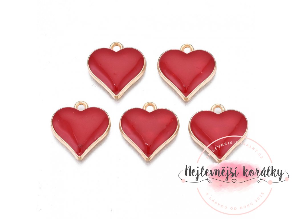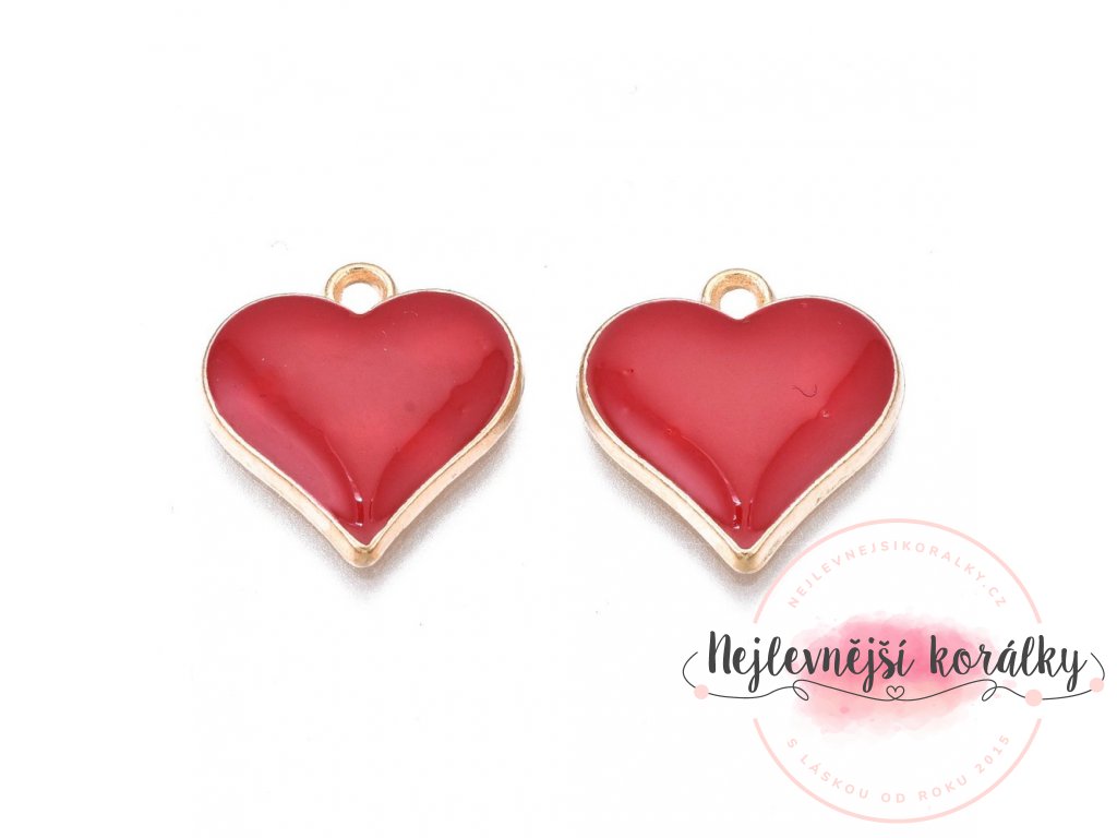 Kovový přívěsek - srdce - červená - 17 x 14 x 3 mm - 1 ks