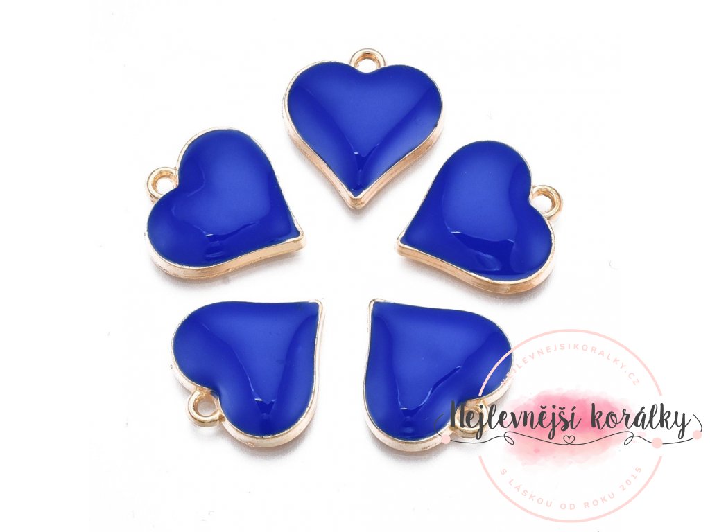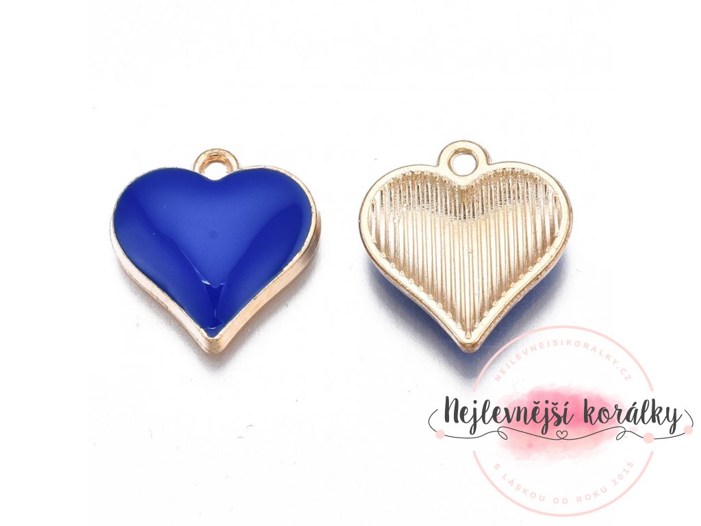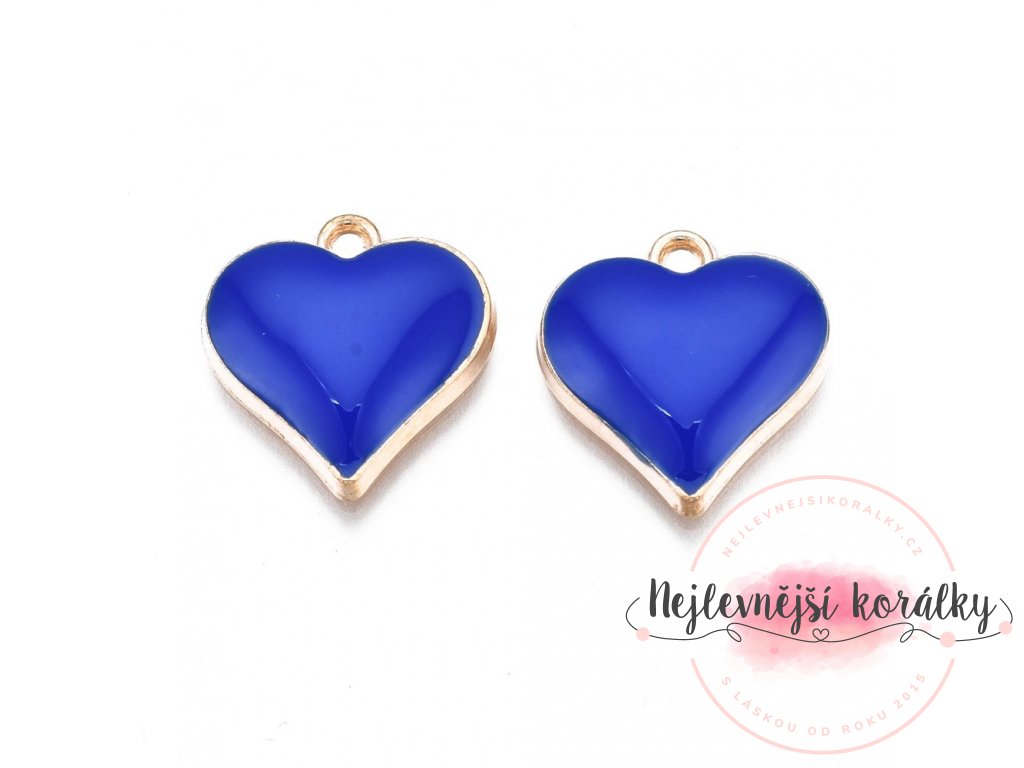 Kovový přívěsek - srdce - modrá - 17 x 14 x 3 mm - 1 ks