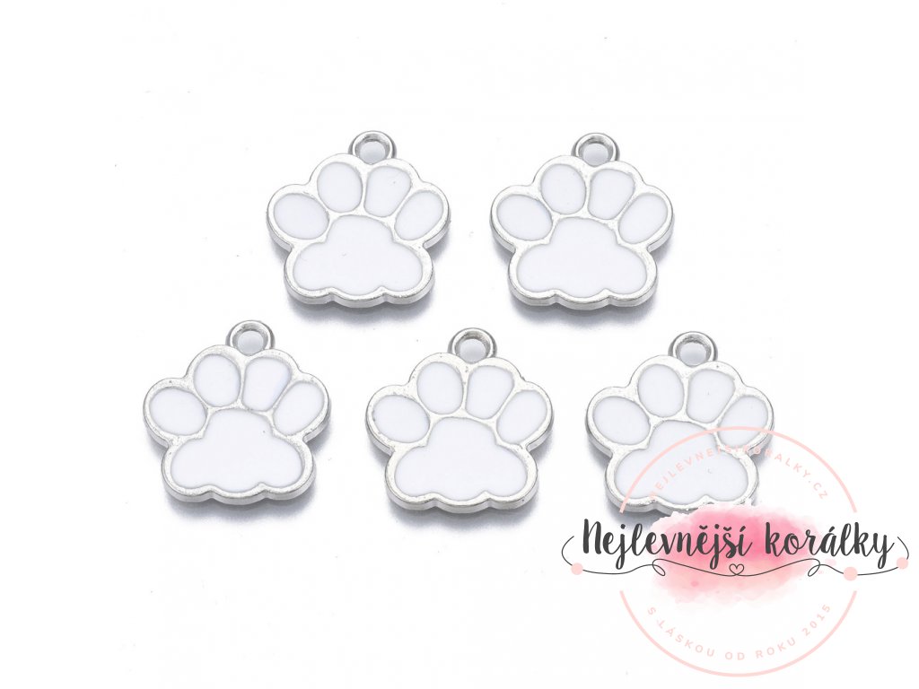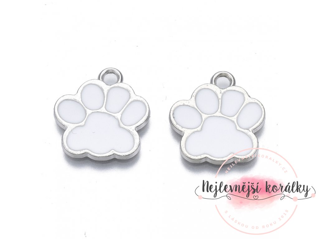 Kovový přívěsek - tlapka - bílá - 17.5 x 16 mm - 1 ks