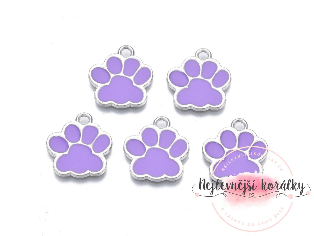 Kovový přívěsek - tlapka - fialová - 17.5 x 16 mm - 1 ks