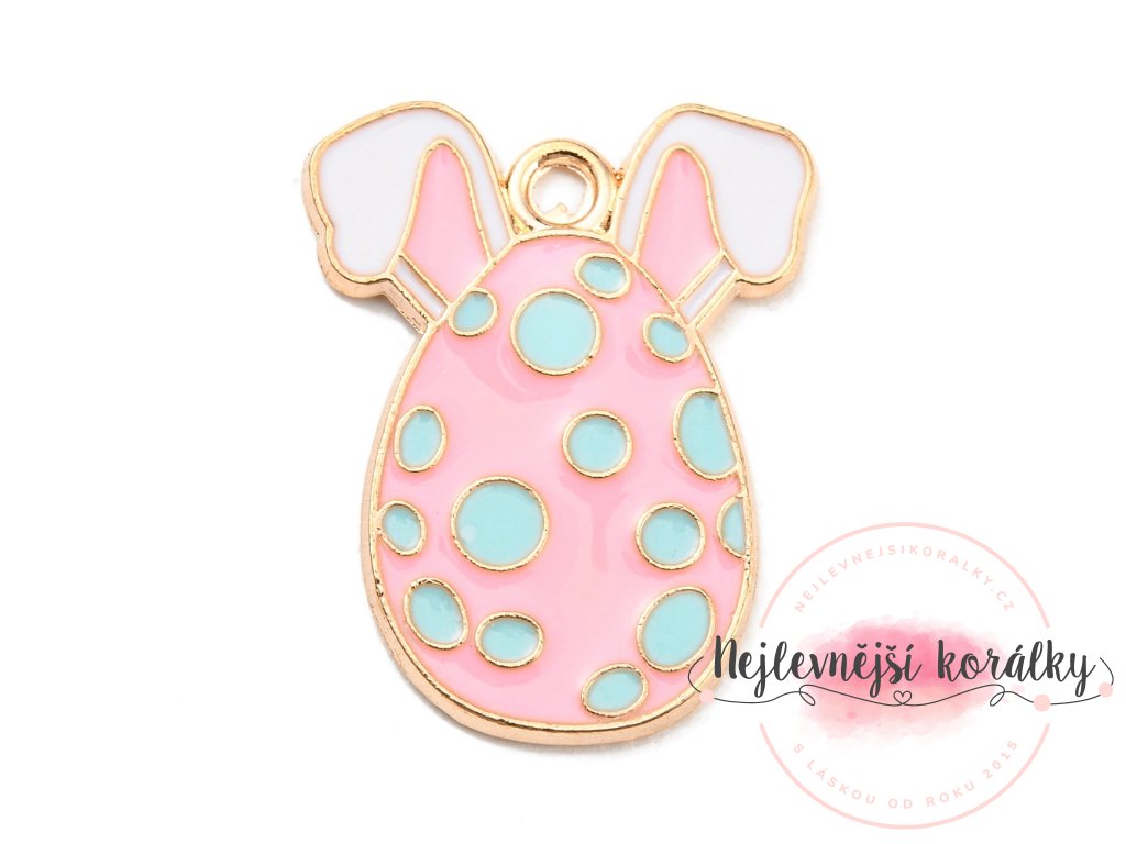 Kovový přívěsek - Velikonoční vajíčko s oušky - růžové - 22 x 17 x 1.5 mm - 1 ks