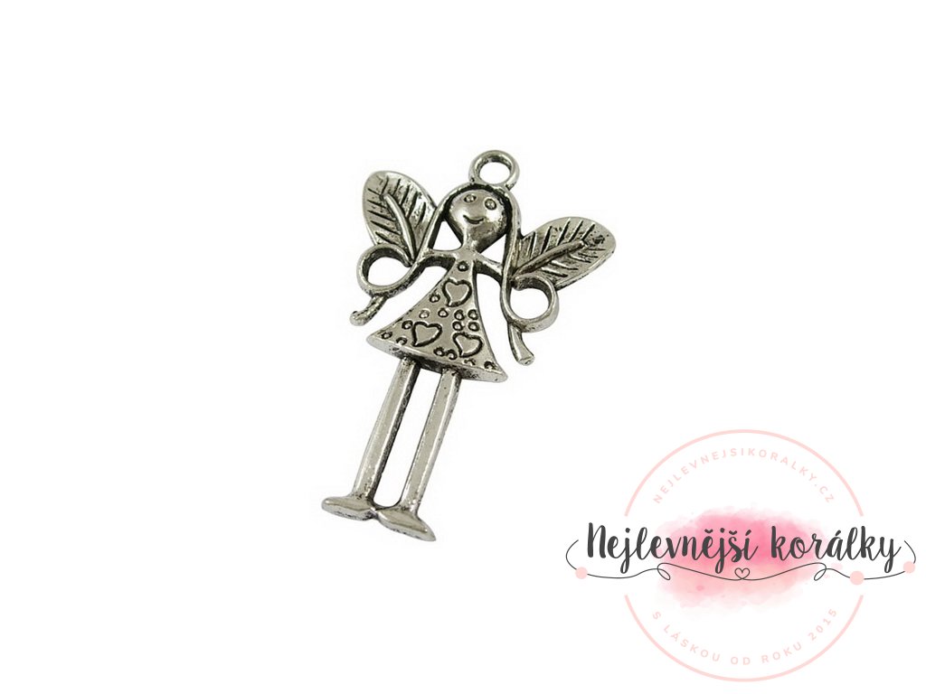 Kovový přívěsek - víla - starostříbrný - 58 x 36 x 5 mm - 1 ks