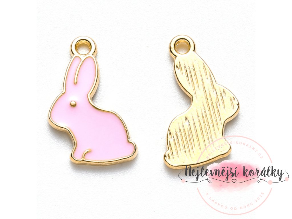 Kovový přívěsek - zajíček - růžový - 17 x 11 x 1.5 mm - 1 ks