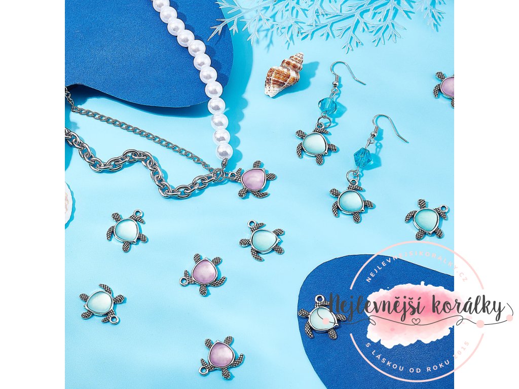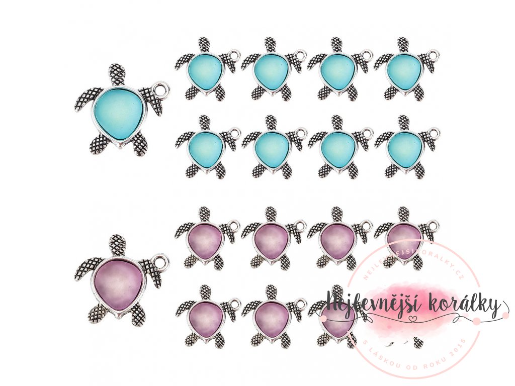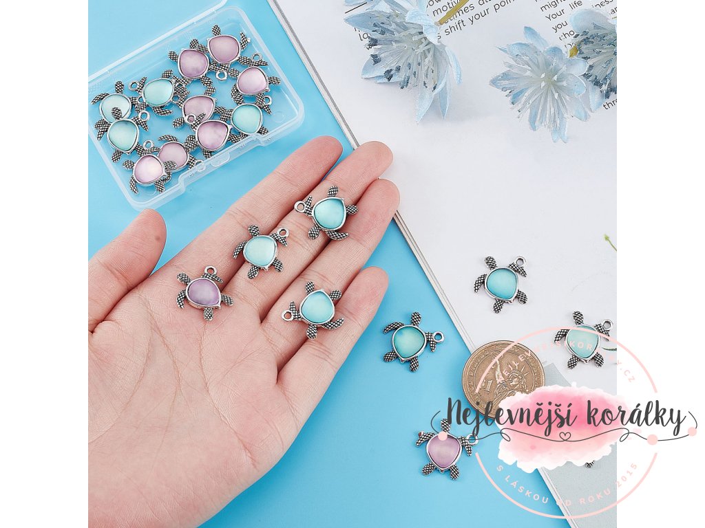 Kovový přívěsek - želva - různé barvy - 21 x 19 x 3 mm - 1 ks