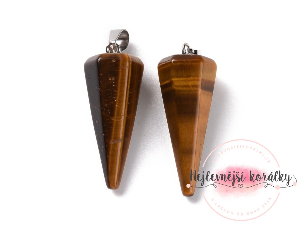 Kyvadlo z tygřího oka – broušený kužel, platinové uchycení
