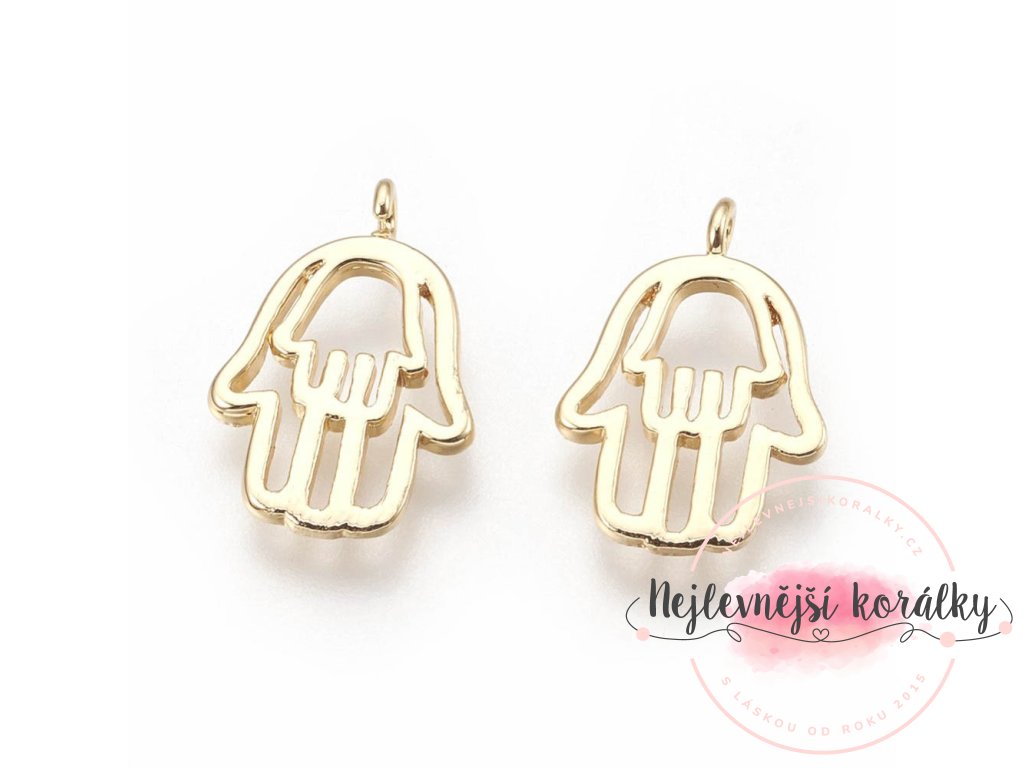 Mosazný přívěsek - pozlacený - hamsa - 17 x 12 x 1,5 mm - 1 ks