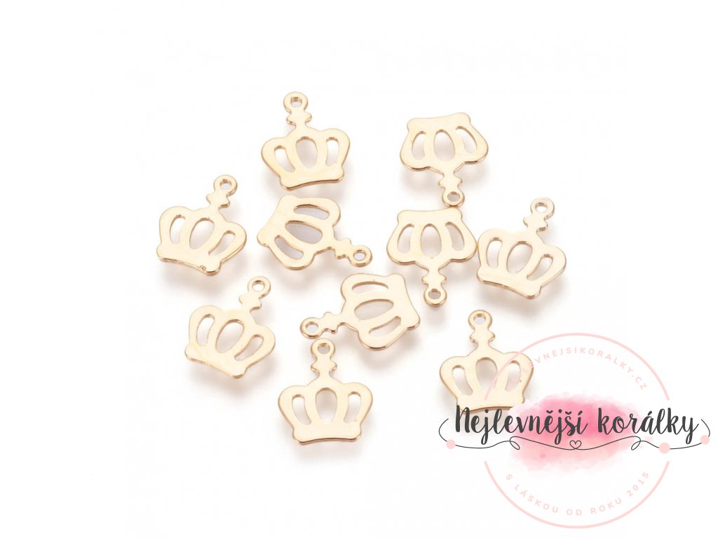 Mosazný přívěsek - pozlacený - koruna - 14 x 11 x 1 mm - 1 ks