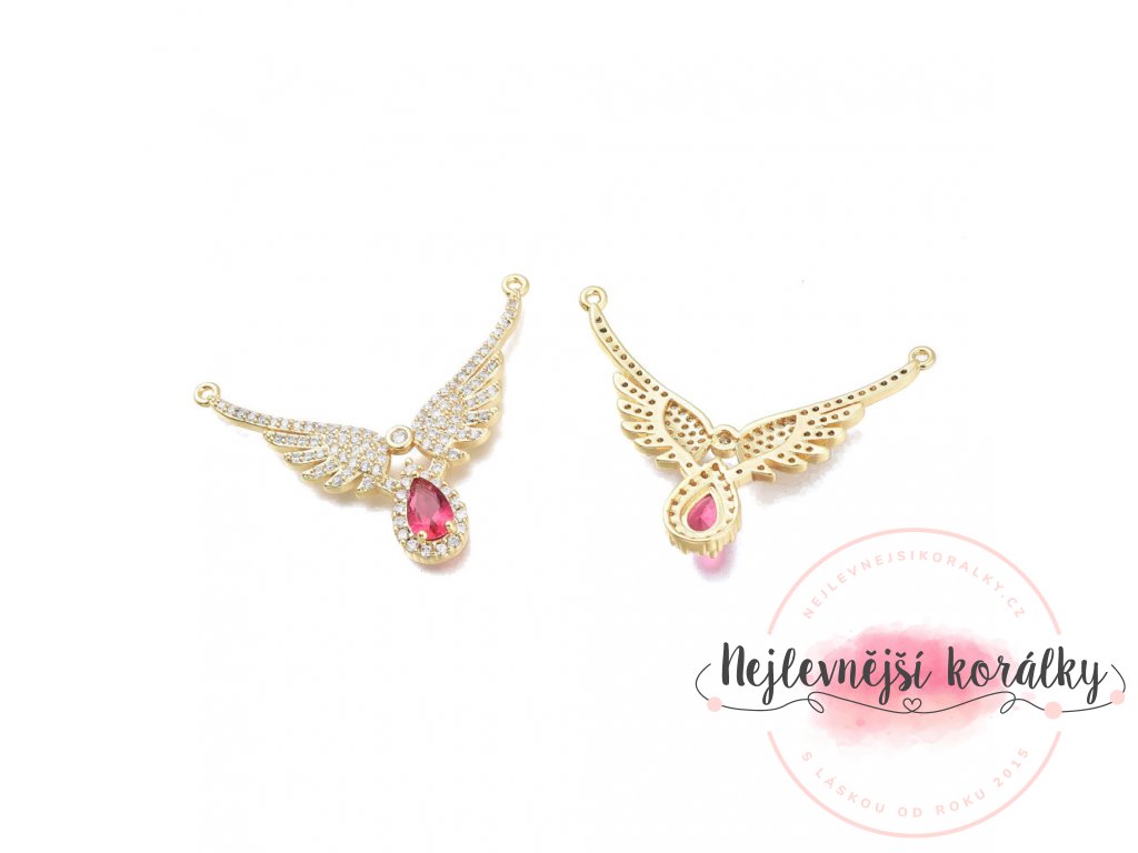 Mosazný přívěsek - pozlacený - křídla s kubickými zirkony - různá provedení - 38 x 32 x 5 mm - 1 ks