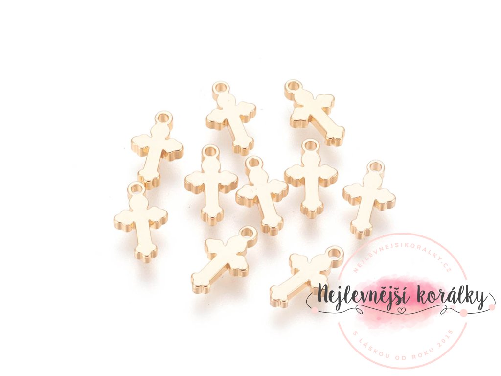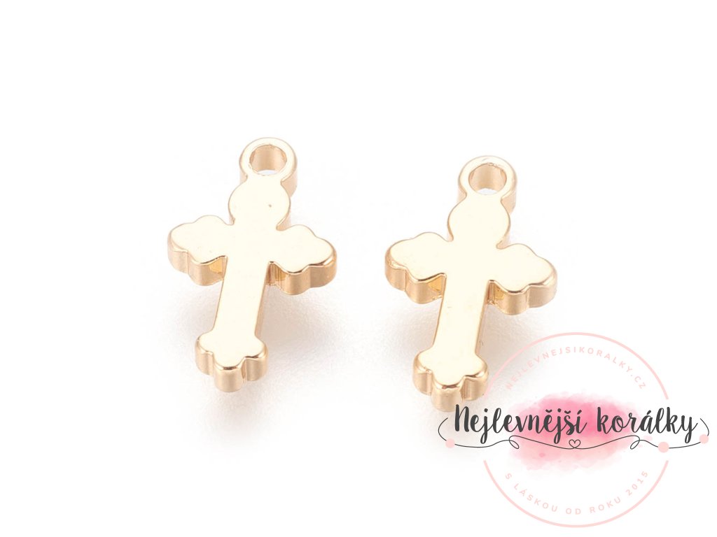 Mosazný přívěsek - pozlacený - kříž - 12 x 7 x 2 mm - 1 ks