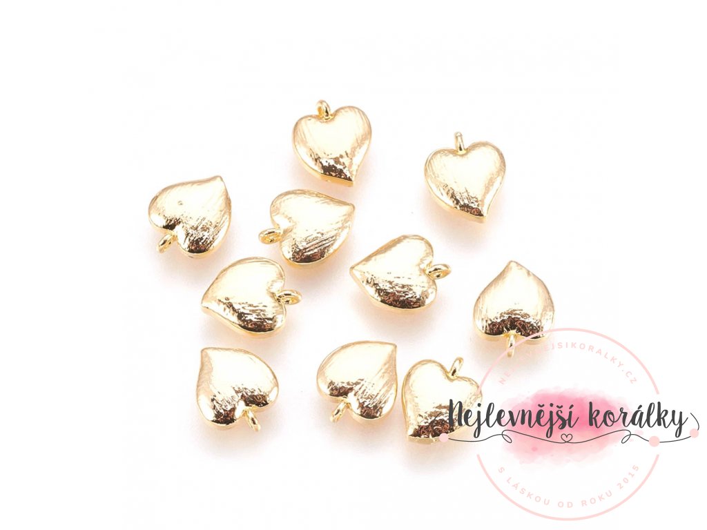 Mosazný přívěsek - pozlacený - srdce - 9 x 7 x 3 mm - 1 ks