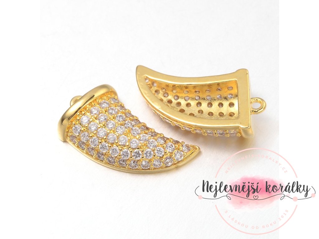 Mosazný přívěsek s kubickými zirkony - roh - ocelově šedý - 16 x 9 x 4 mm - 1 ks