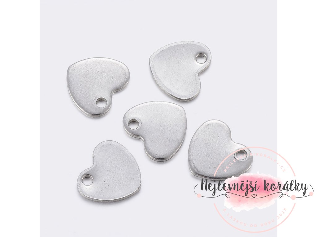 Přívěsek z nerezové oceli - platinový - srdce - 9 x 10 x 1 mm - 1 ks