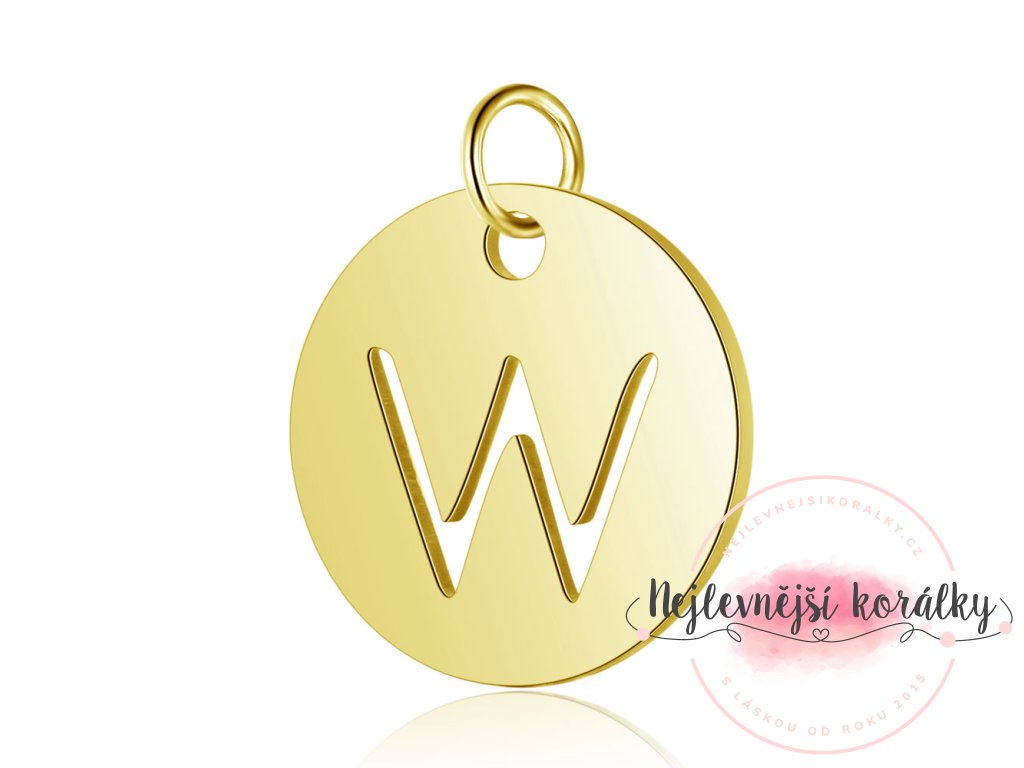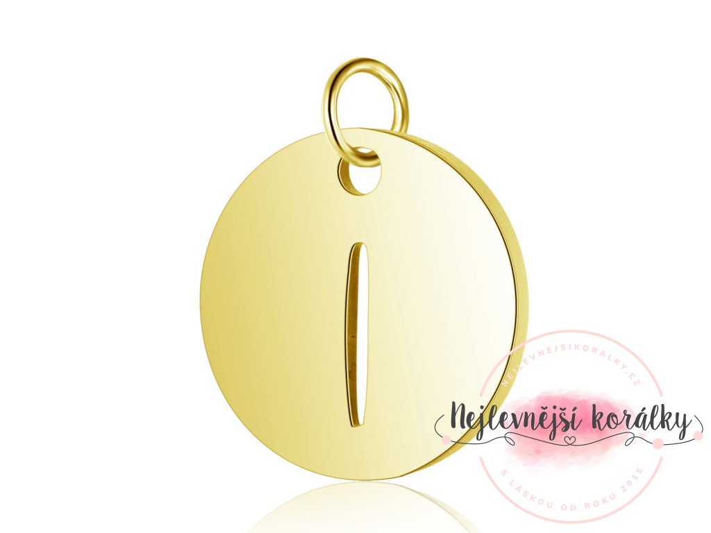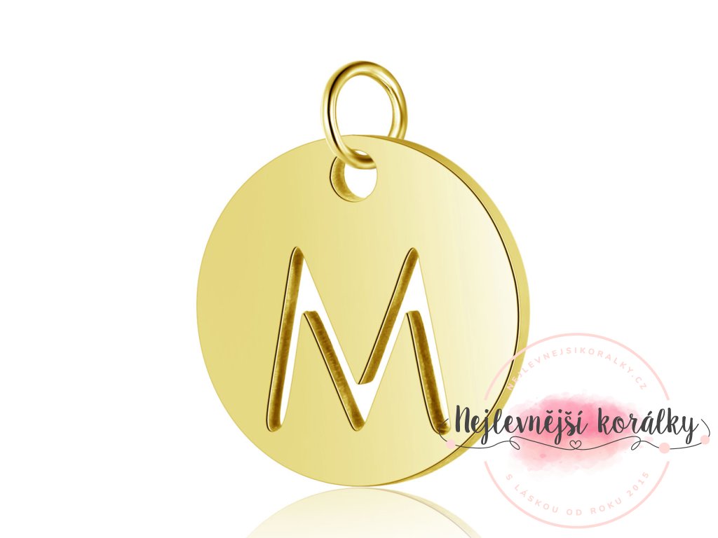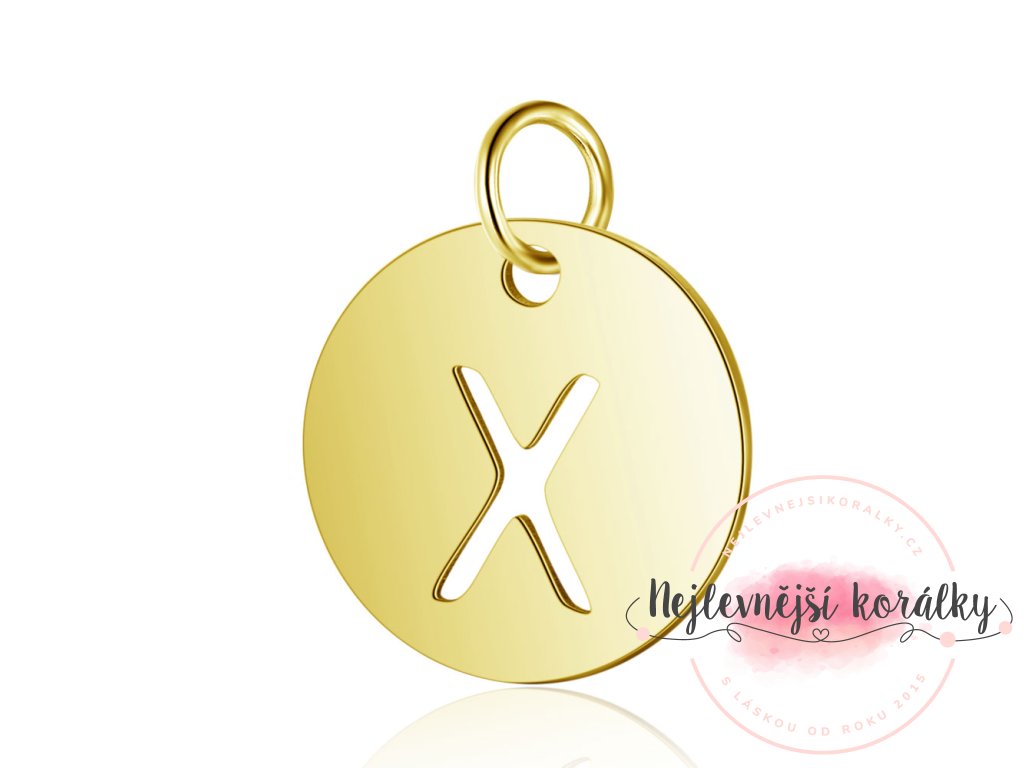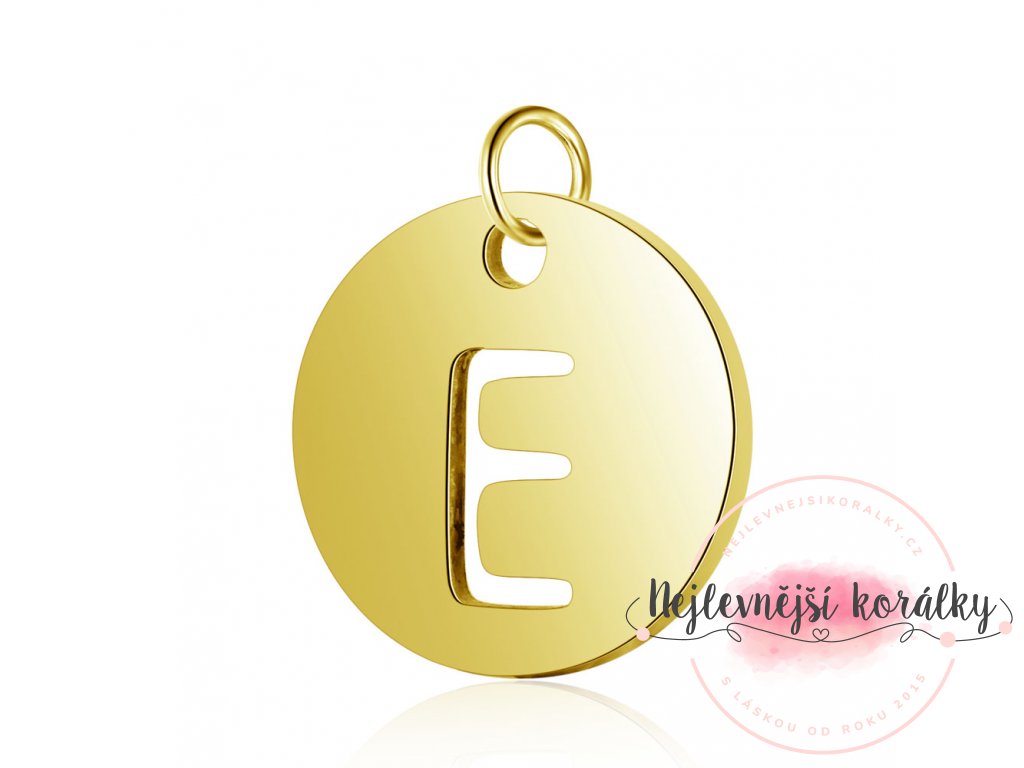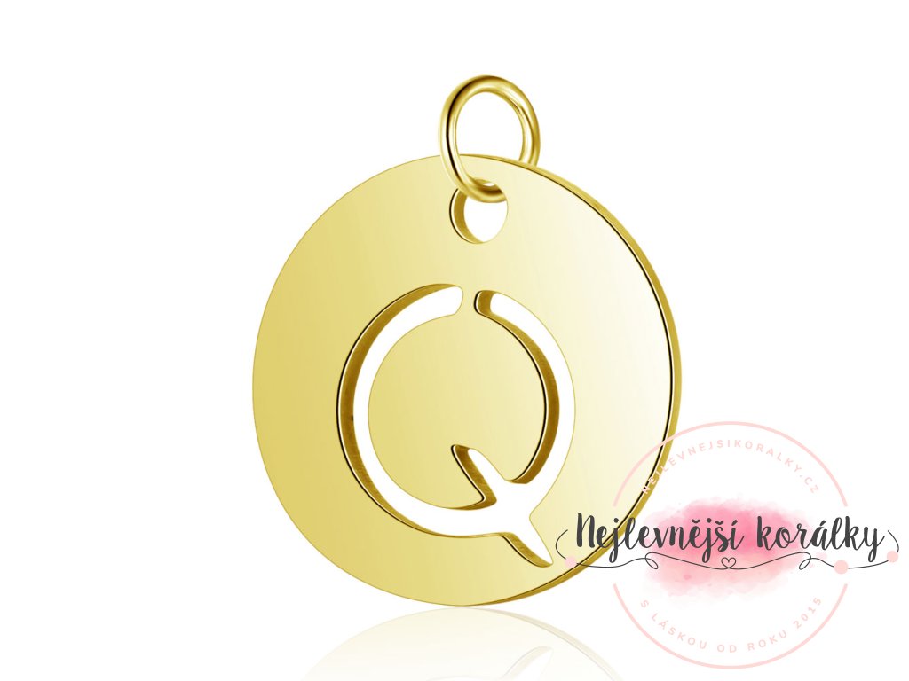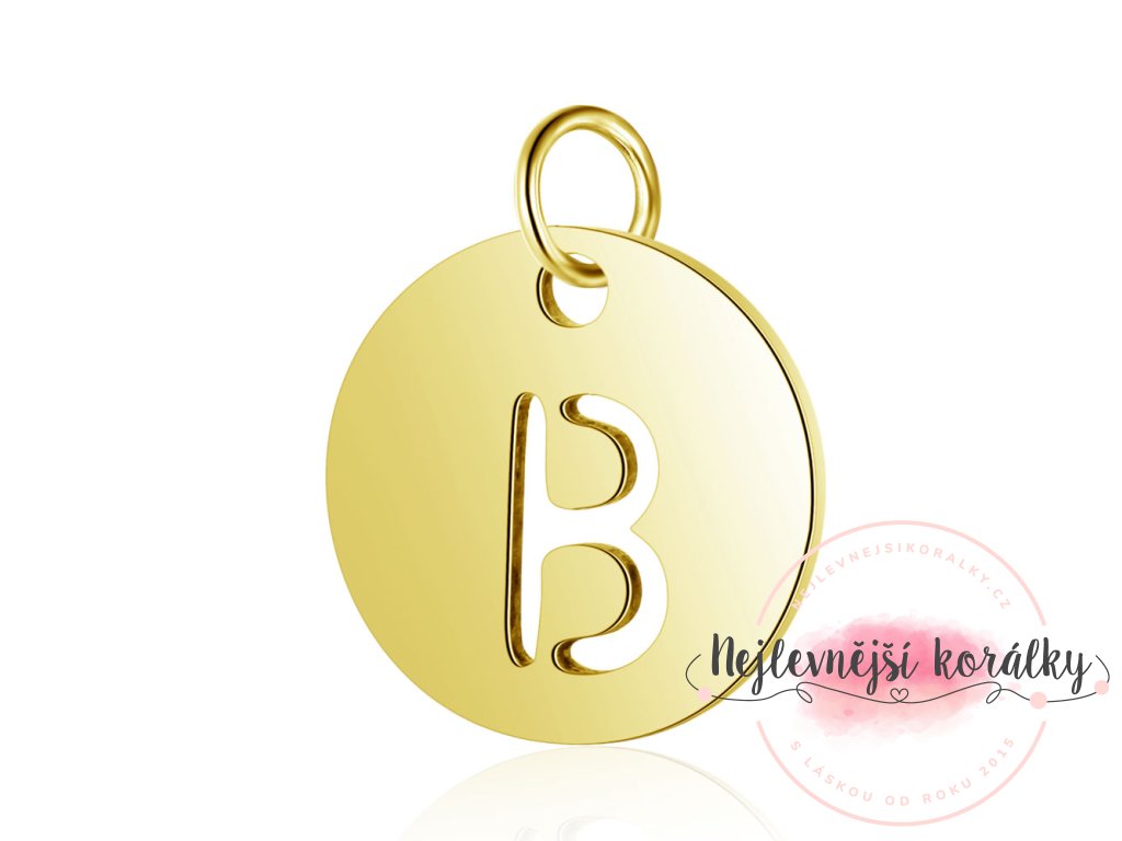 Přívěsek ve zlatém provedení s laserem vyřezaným písmenem abecedy je vyroben z nerezové oceli 304 a barven pokovením.