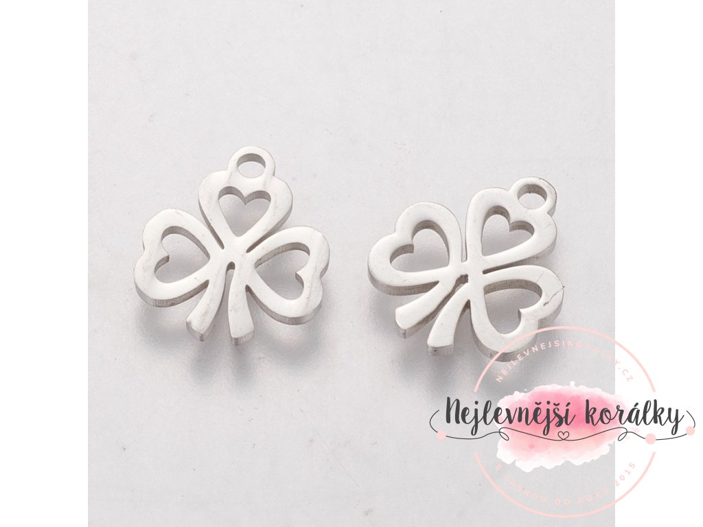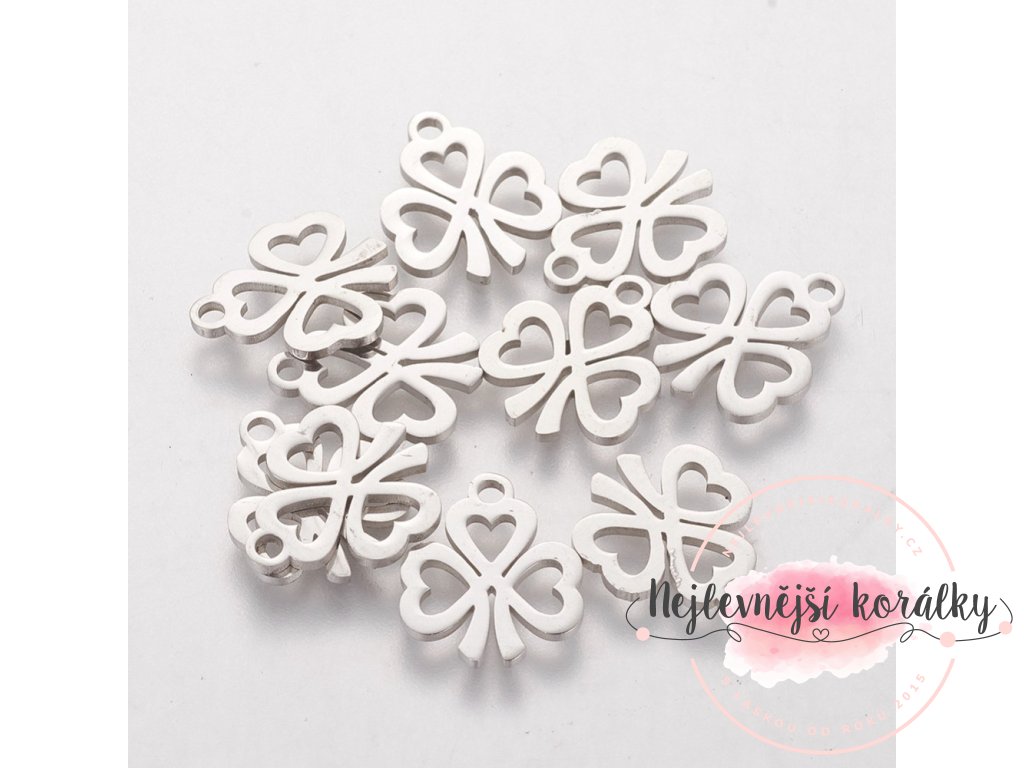 Přívěsek z nerezové oceli - platinový - trojlístek - 13,5 x 11,5 x 2 mm - 1 ks